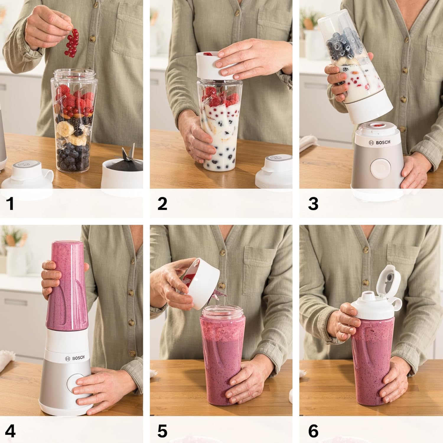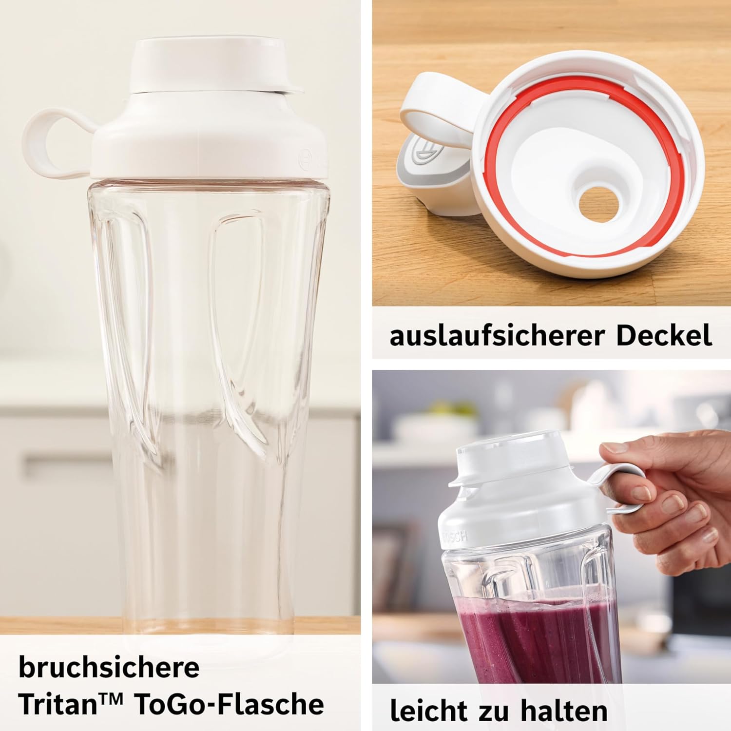 Смесете вашето смути директно в бутилката Tritan ToGo и я вземете със себе си. Можете да правите смутита със замразени плодове, млечни шейкове или протеинови напитки.