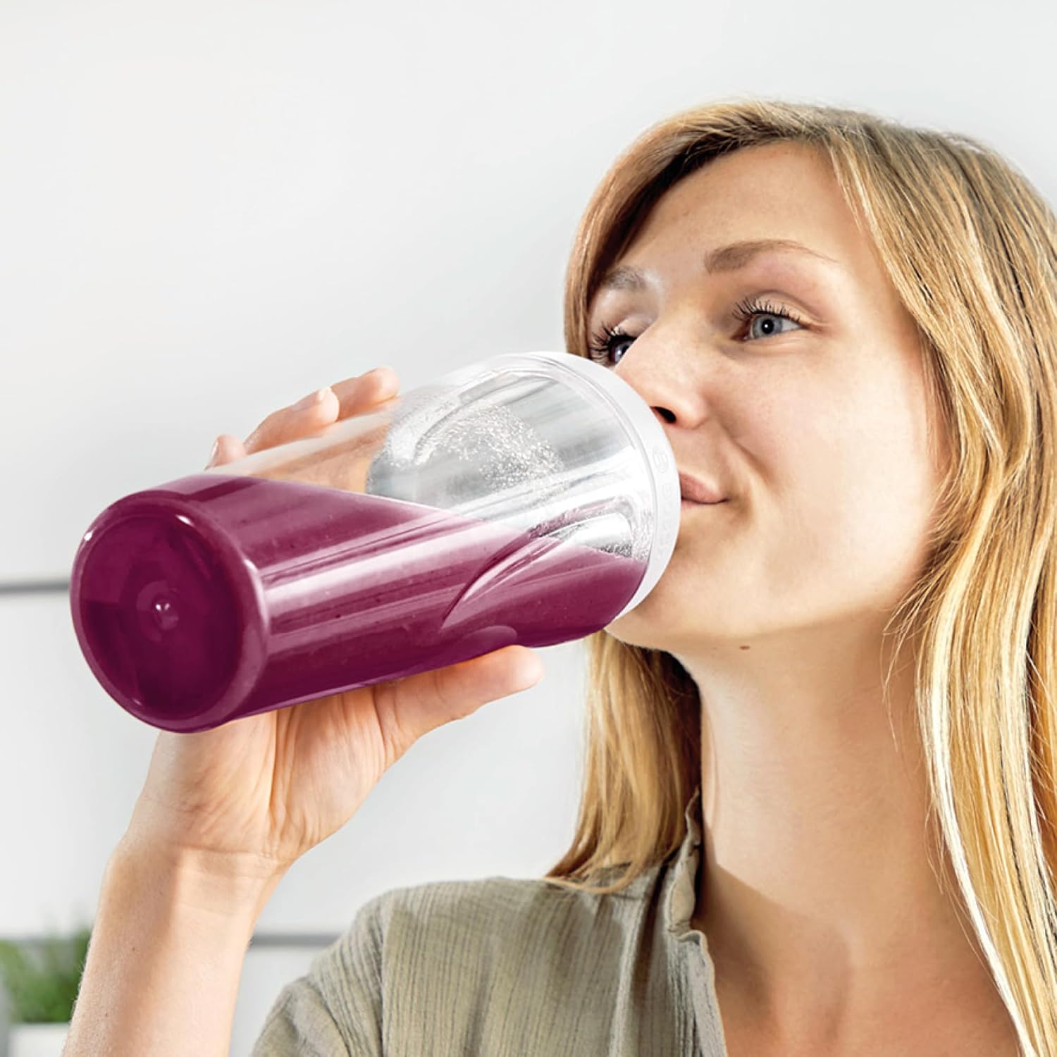 Enjoy your freshly prepared smoothie in the car, in the office, on the bus or on the go. Thanks to the ergonomic design, the bottle is easy to carry and can be easily stored in bottle holders as well as in the bag.