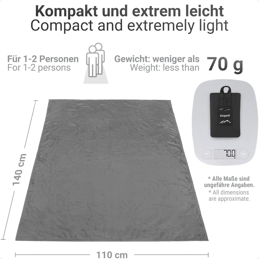• Малко и леко: Ултратънкото одеяло за пикник е специално разработено за един човек. Разгънато е с размери 110 x 70 см и тежи по-малко от 40 г.