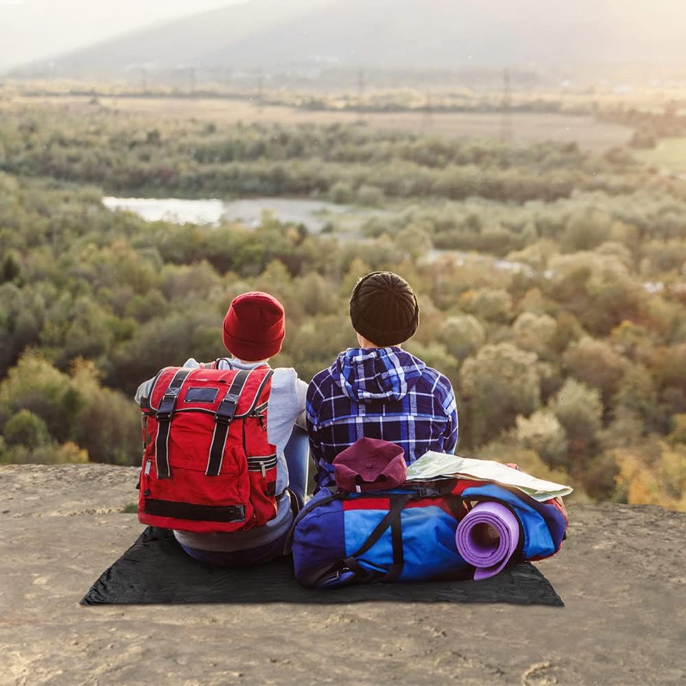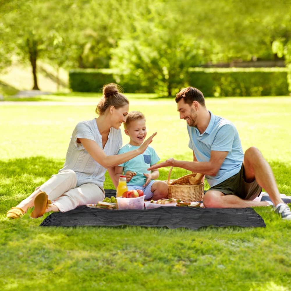 Мини одеяло за пикник, ултралеко, ултратънко преносимо плажно одеяло, одеяло за плаж, пикник, къмпинг и туризъм, 140 x 150 см (черно)