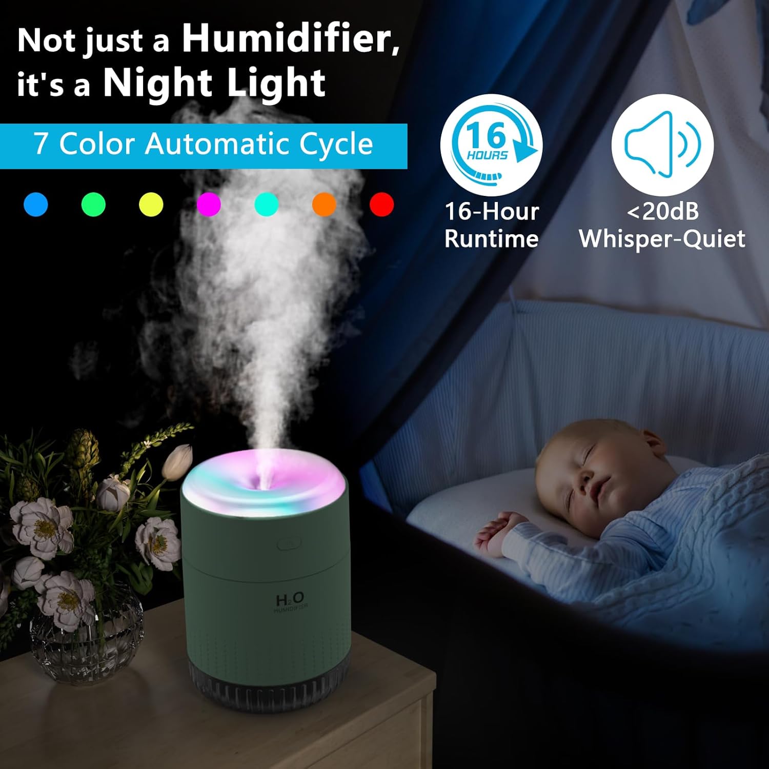 • Тих овлажнител Този овлажнител с батерия е много тих по време на работа, така че няма да наруши съня или работата ви. Той ефективно овлажнява въздуха и овлажнява сухата ви кожа.