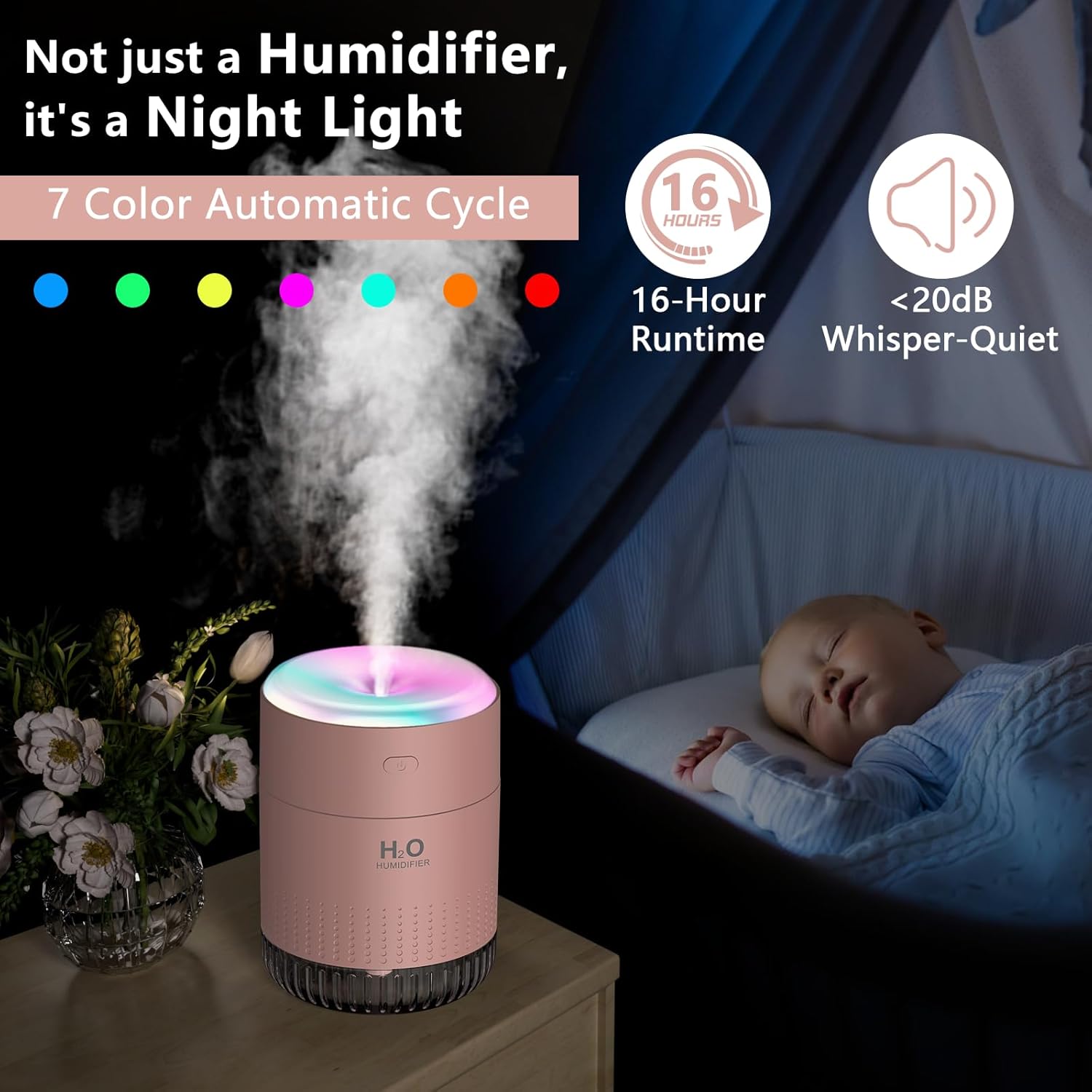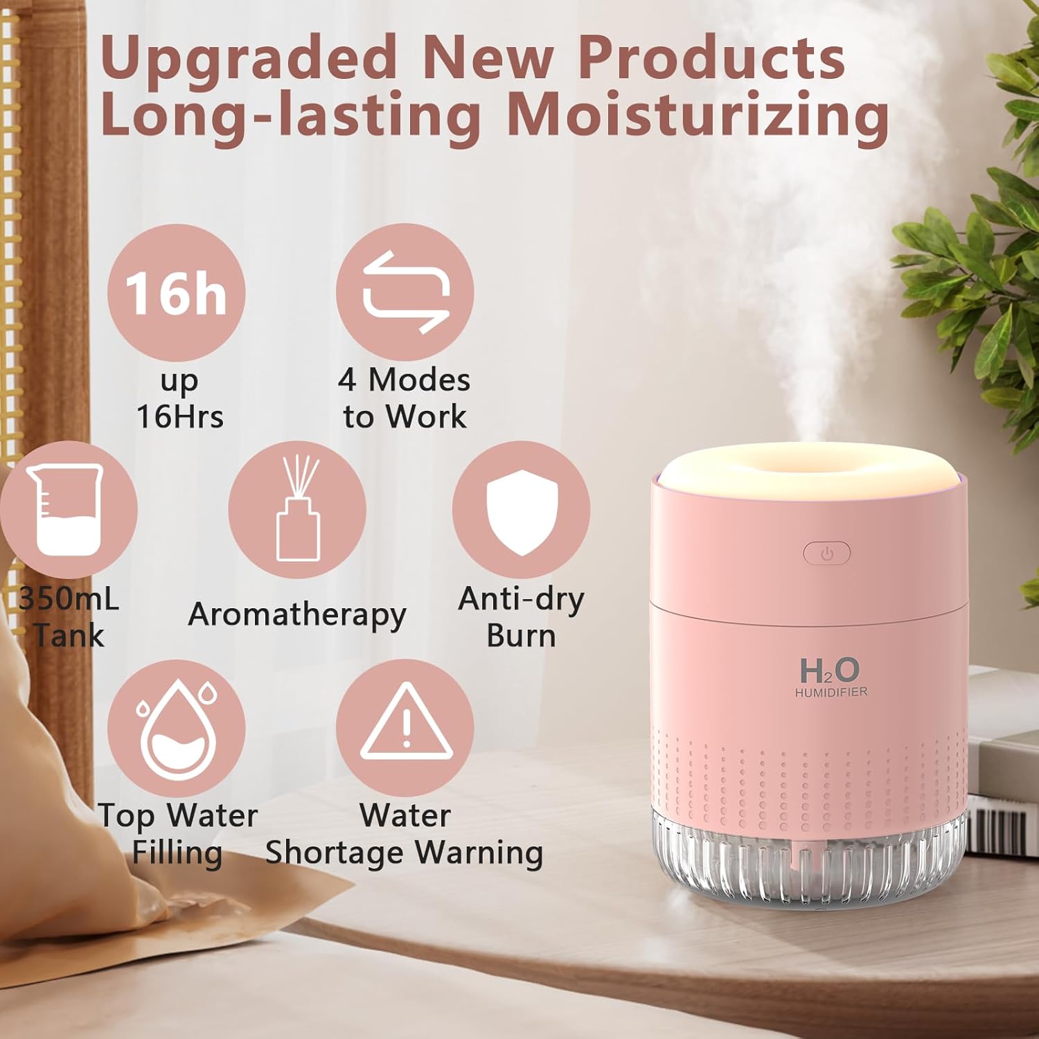 • Тих овлажнител Този овлажнител с батерия е много тих по време на работа, така че няма да наруши съня или работата ви. Той ефективно овлажнява въздуха и овлажнява сухата ви кожа.