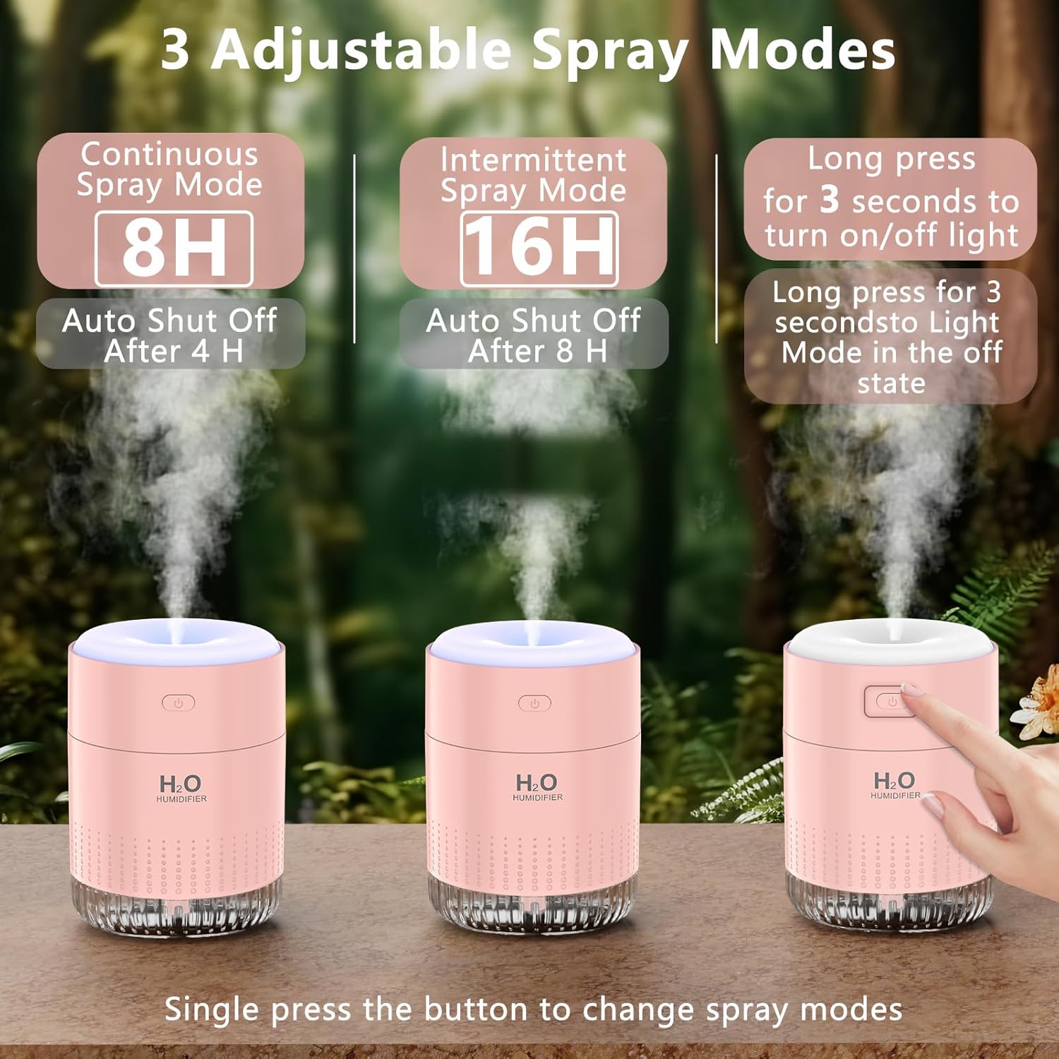• Преносим овлажнител Мини овлажнителят е проектиран да бъде компактен и лек и може да се носи навсякъде. Нашият овлажнител има и функция за зареждане през USB, така че не е нужно да се притеснявате за кабел за данни и да го използвате в спалнята, офиса и колата.