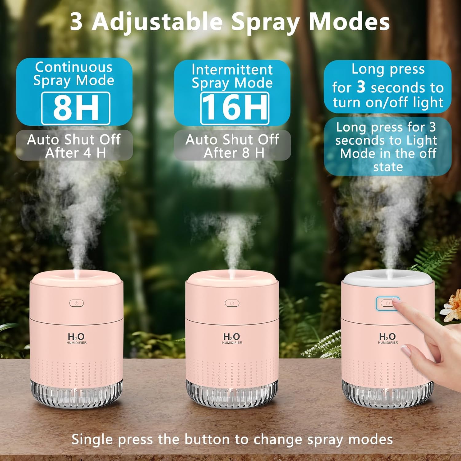 • Преносим овлажнител Мини овлажнителят е проектиран да бъде компактен и лек и може да се носи навсякъде. Нашият овлажнител има и функция за зареждане през USB, така че не е нужно да се притеснявате за кабел за данни и да го използвате в спалнята, офиса и колата.