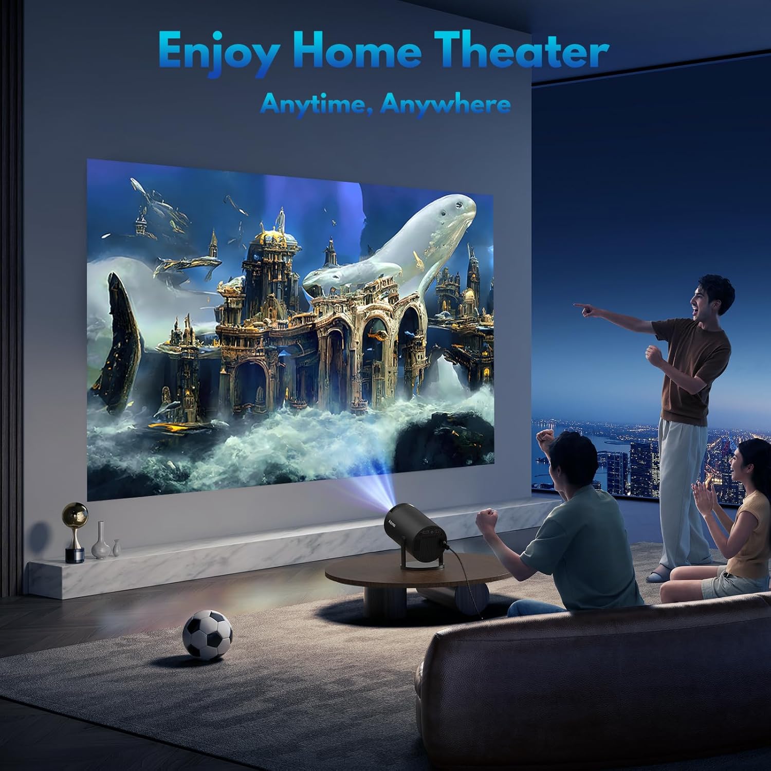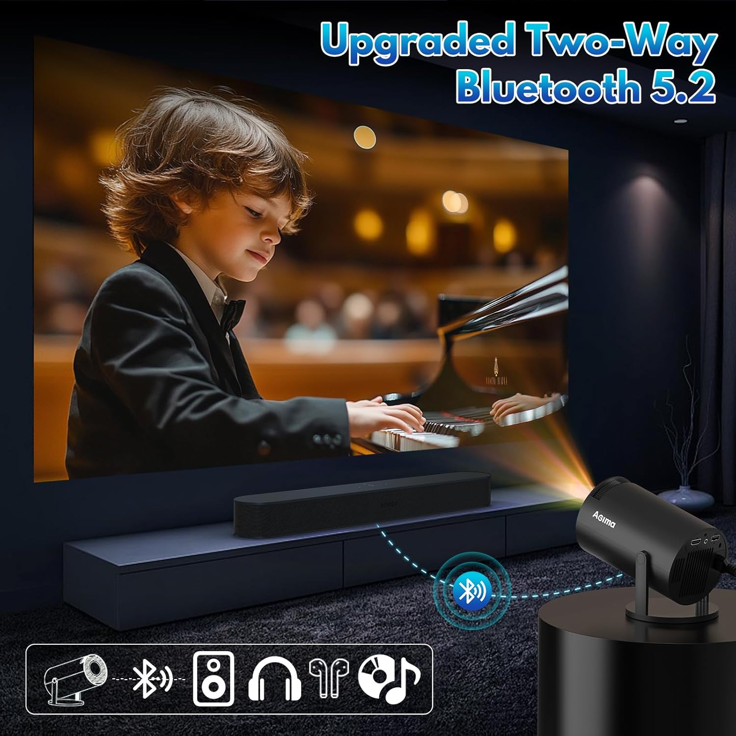 Мини проектор, 1080P 4K поддръжка на 180° въртене, преносим стрийминг проектор, малък видео проектор, поддържащ 2.4/5G двоен WiFi и Bluetooth 5.0, с Android и iOS интелигентен проектор, двойно управление