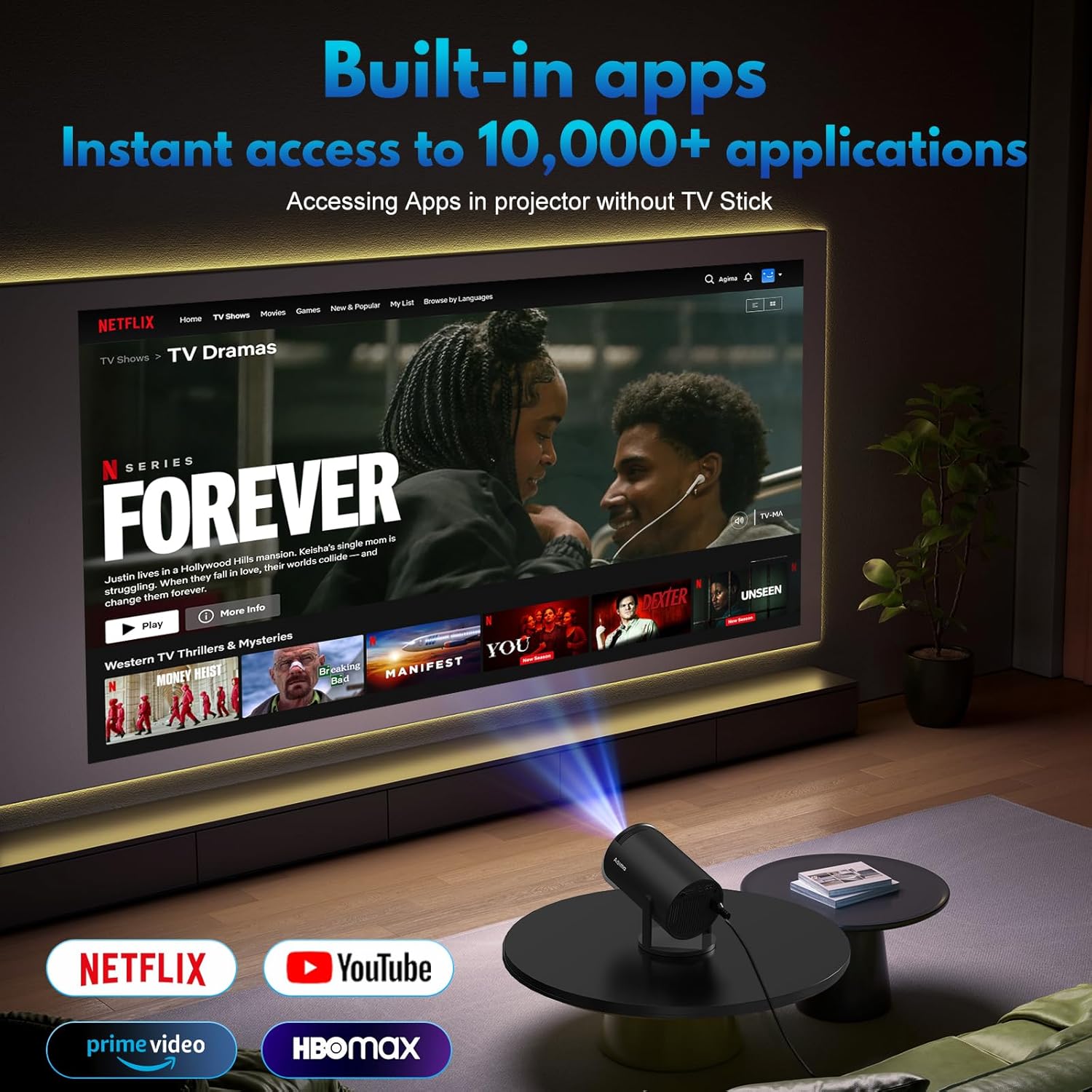 • 【X1 Стрийминг проектор и сбогом на традиционния HDMI проектор】: Традиционният проектор може да прожектира само през HDMI порта, само с една функция. Проекторът X1 включва Netflix, YouTube, Prime Video и други приложения. След свързване към мрежата можете да възпроизвеждате видеоклипове и да гледате снимки директно онлайн. Проекторът X1 също така има функции Airplay, Miracast и HDMI и поддържа устройства като Android, iOS и лаптопи. Проекторът X1 може да отговори на различни изисквания за ежедневна употреба.