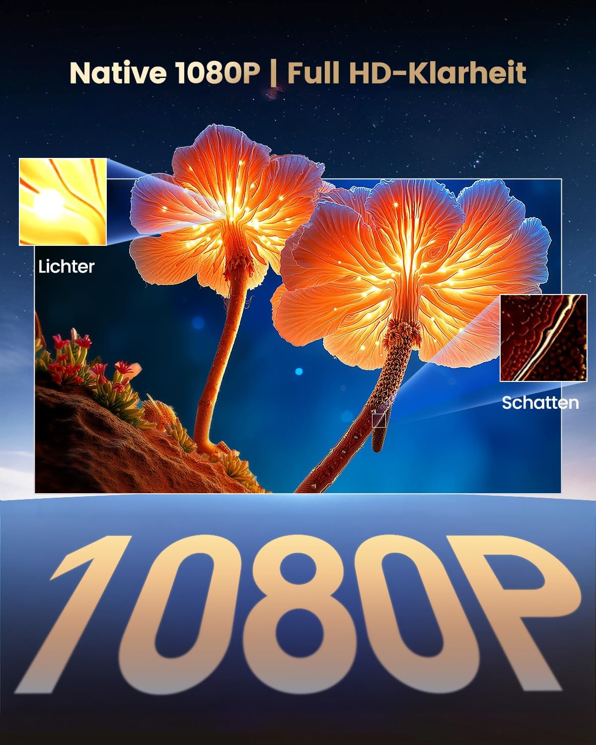 • Versatile mounting and wide compatibility: the P61 PRO outdoor projector supports ceiling mounting, table mounting and wall mounting with M6 thread mount on the bottom, ideal for home theaters, gaming and business presentations. The small projector has 1 x HDMI port with CEC/ARC support, 1 x USB port and 1 x 3.5 mm headphone jack, which is compatible with Fire TV Stick, Chromecast, Roku, DVD, laptop, USB, external speakers, Switch/PS5 etc. You can use the home theater projector for home videos, outdoor parties, presentations, camping and yoga.