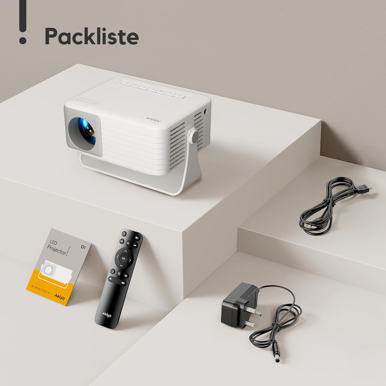 Мини проектор [Car Keystone & 2025 Upgraded] AKIYO O1 Проектор Малък 1080P Поддържа 360° въртящ се 15000L Проектор за домашно кино, 50% Zoom Проектор за външен монтаж Съвместим със смартфон/TV Stick
