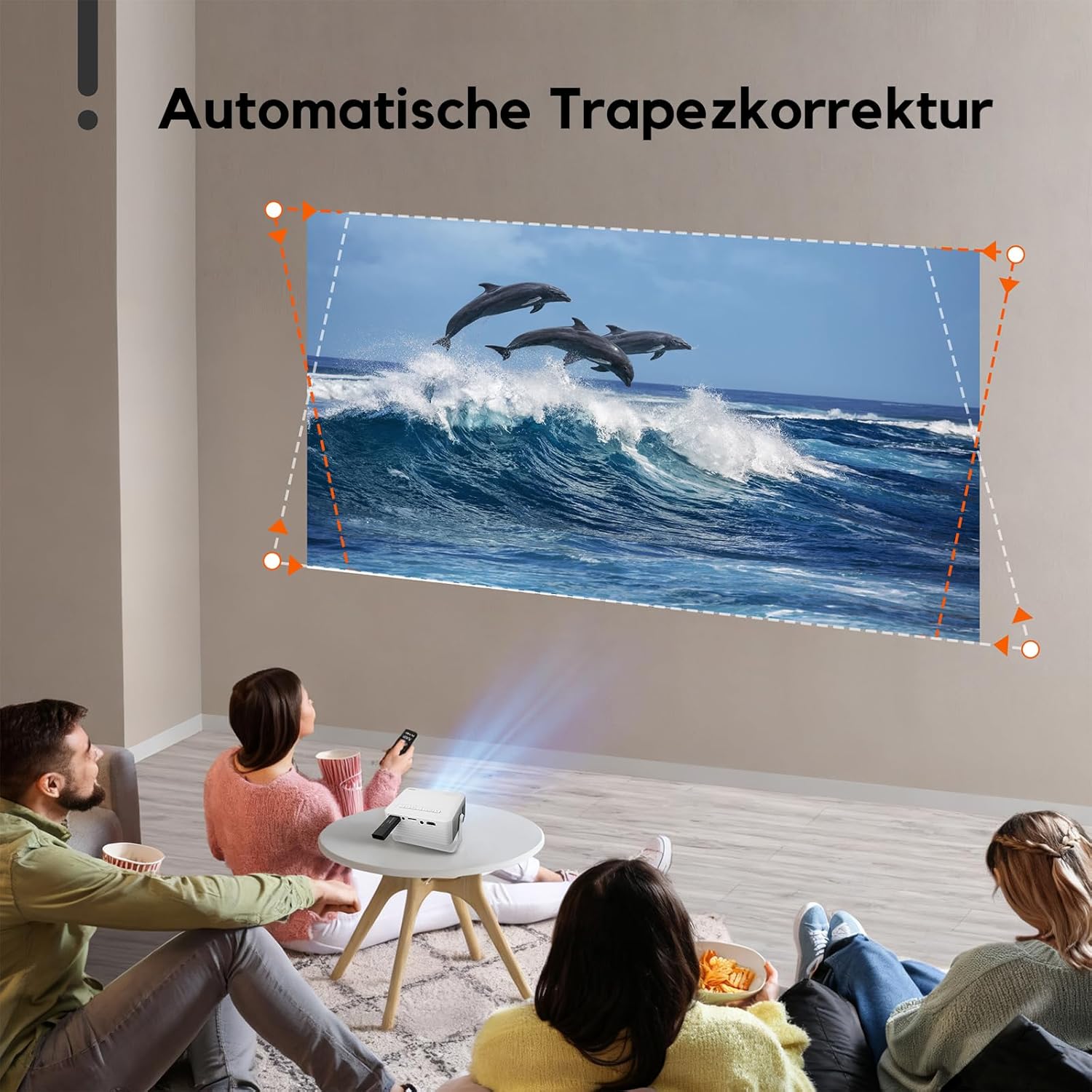• Подобрена автоматична корекция на трапецовидно изкривяване и завъртане на 360°: Проекторът AKIYO O1 Mini има въртяща се на 360° скоба, така че можете да се сбогувате с ограничението на ъгъла на прожектиране и да гледате любимите си филми в леглото. С автоматична корекция на трапецовидно изкривяване и 50% увеличение можете да регулирате размера на изображението и да получите перфектен правоъгълник, без да се налага често да местите проектора. Така можете гъвкаво да го адаптирате към различни помещения.