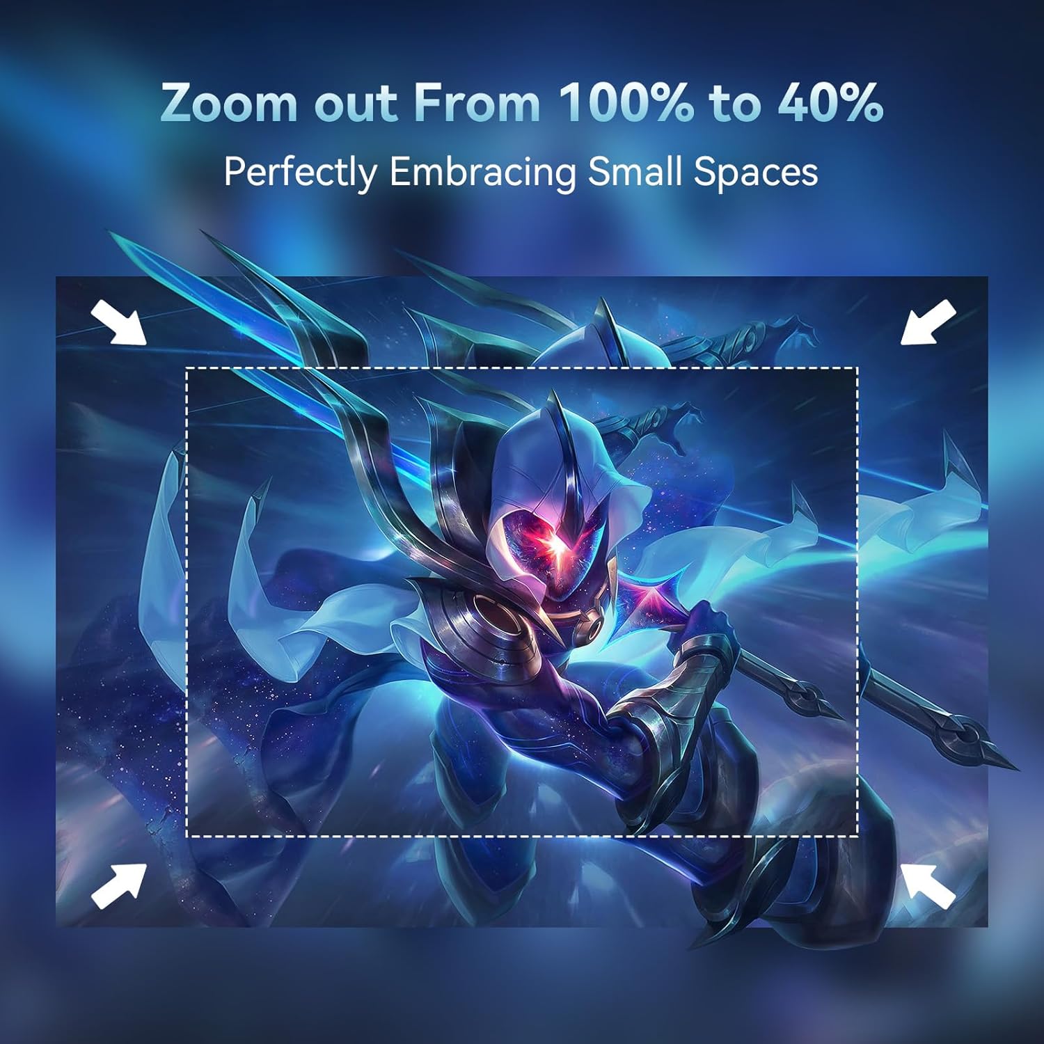 • Висококачествено изображение: Този мини проектор поддържа резолюция от 1080P 4K и осигурява ясни и детайлни изображения. Той използва усъвършенствана технология за цветове и поддържа HDR10, HLG и др. Цветовете са живи и реалистични и създават реалистични визуални ефекти. Оптималното разстояние на прожектиране е 1,78 м, а размерът на прожектиране е 152 см. Автоматичната хоризонтална корекция на трапецовидното изкривяване осигурява оптимална позиция на прожектиране.