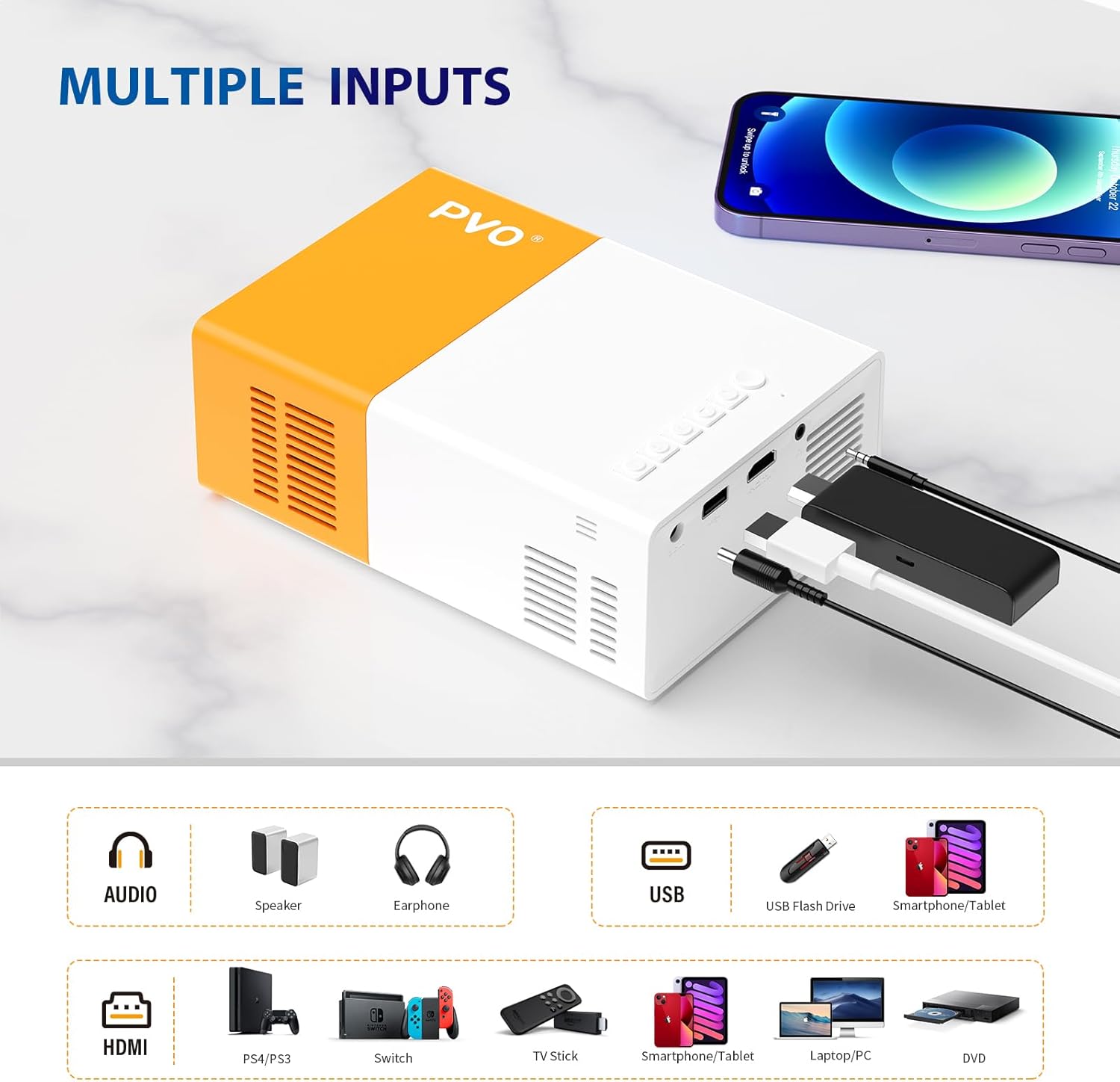 • Лесен за употреба: Мини проекторът PVO е лесен за употреба, много лесен за употреба. PVO има сертификати FCC, CE, RoHS, UKCA, PSE и др., не се притеснявайте за въпроси относно качеството на продукта. Ако имате някакви въпроси, моля, свържете се с нас, ние сме на ваше разположение 24/7, за да ви задоволим.