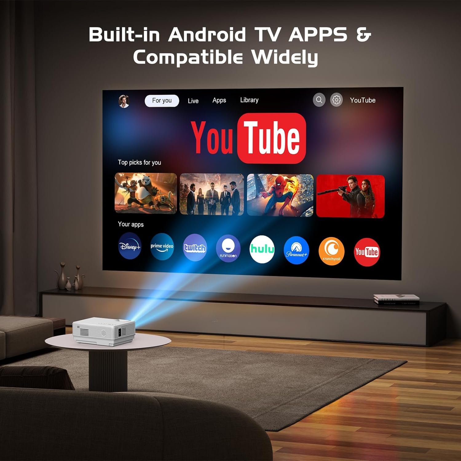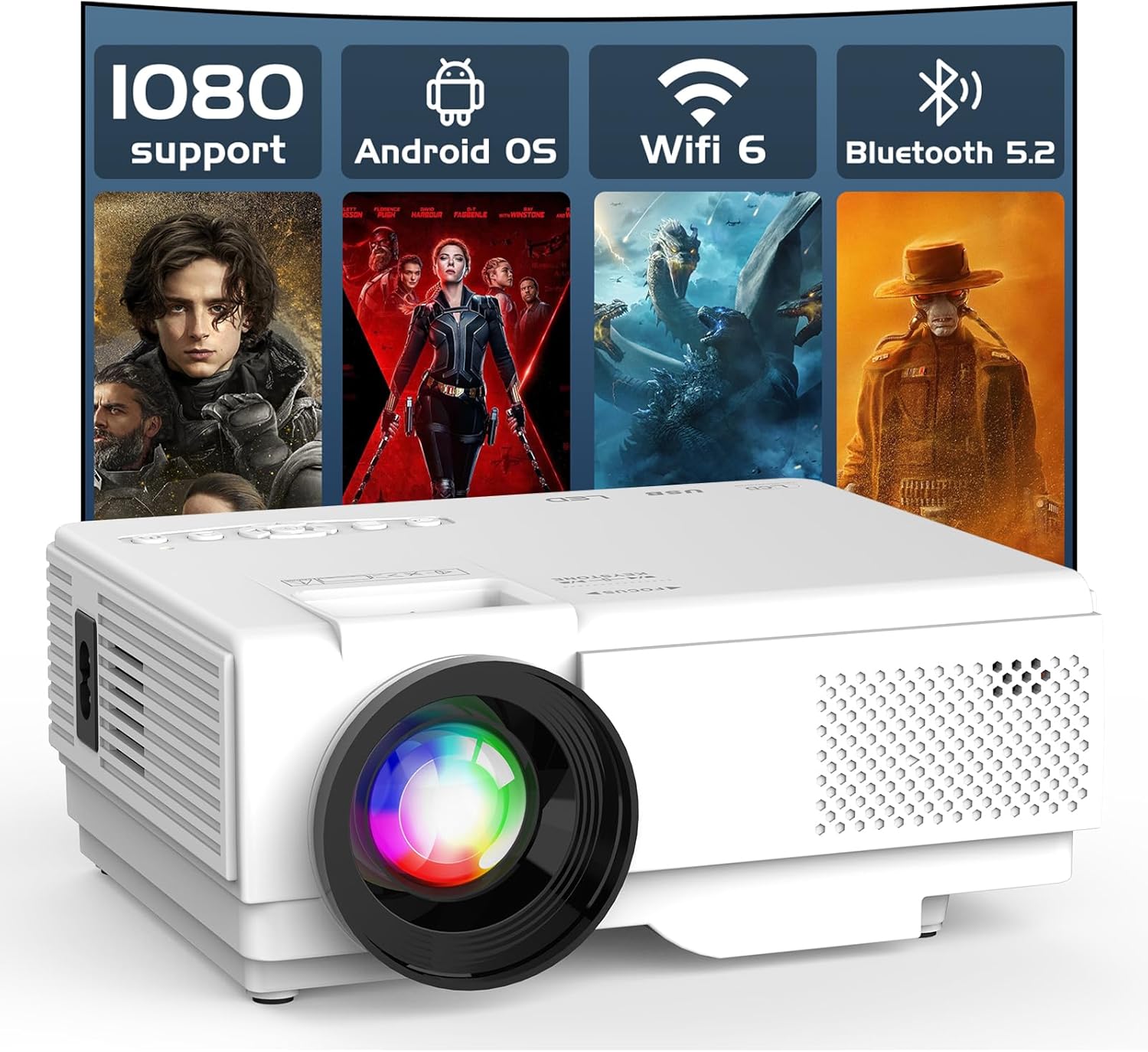 Мини проектор с Android OS, AKATUO Smart Bluetooth проектор Full HD 1080P преносим външен филмов проектор за Android, Windows, съвместим с TV Stick/HDMI/смартфон