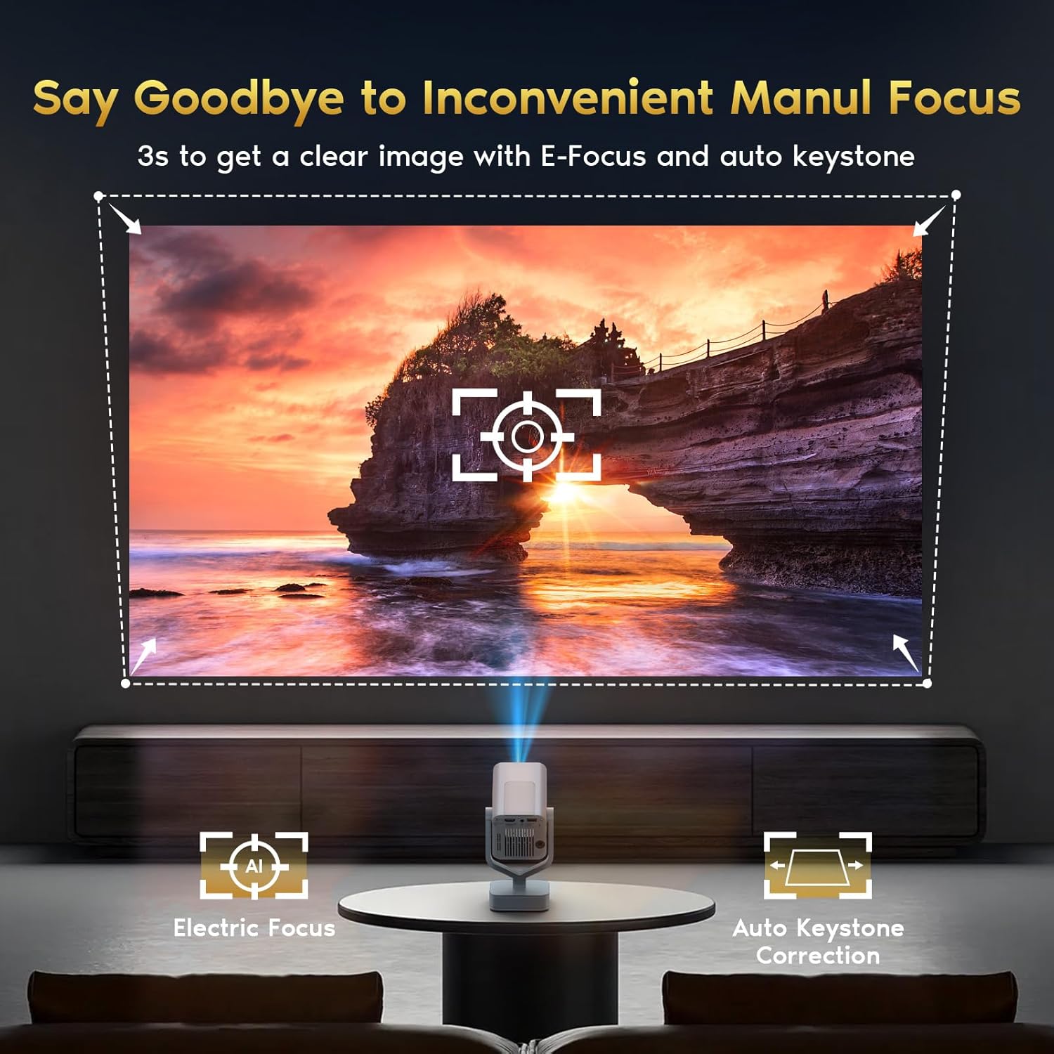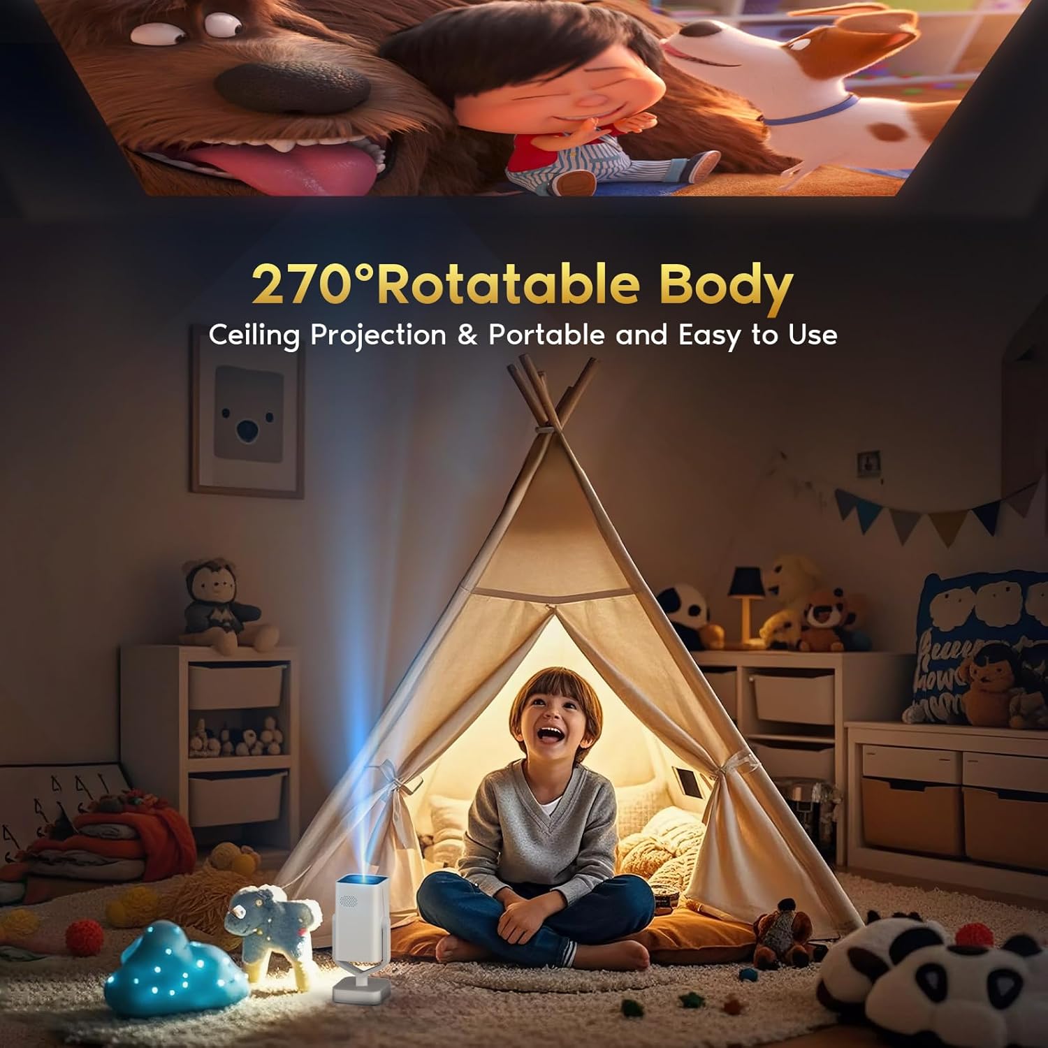 • Лек и преносим - Винаги с вас. Благодарение на компактния дизайн и ниското тегло, проекторът може да се използва навсякъде. Независимо дали е хол, спалня, офис или къмпинг - просто го вземете със себе си, настройте го и се насладете на кино изживяване за секунди. Без обемисти устройства, без затруднения - вашето забавление вече се побира във всеки джоб.