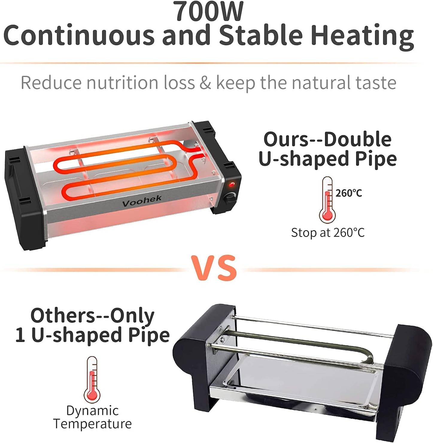• Бързо загряване и постоянна температура: раклет за 2 души с мощност 700 вата, вграден нагревателен елемент за бързо загряване, равномерно загрявани съдове за печене, температурата на електрическата скара остава стабилна, когато достигне 260 градуса по Целзий. Намалява загубата на хранителни вещества от храната, като същевременно запазва естествения ѝ вкус.