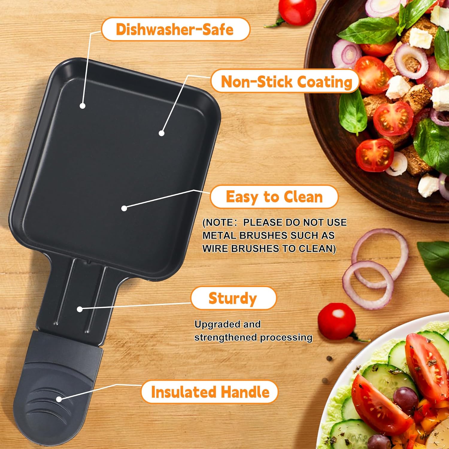 • Безопасни за храна и издръжливи - Идеални за здравословен раклет. Нашите тигани за раклет са изработени от сертифициран незалепващ материал (стандарт на ЕС). Идеални за печене на скара с ниско съдържание на мазнини - насладете се на сирене, зеленчуци и месо без никакви притеснения.