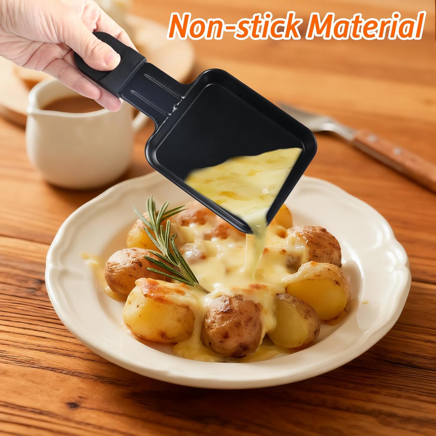 (1) Тиганите за раклет са изработени от 100% висококачествено желязо, безопасни, нетоксични и издръжливи, за многократна употреба.