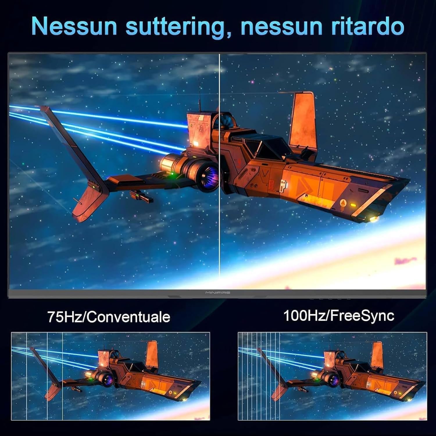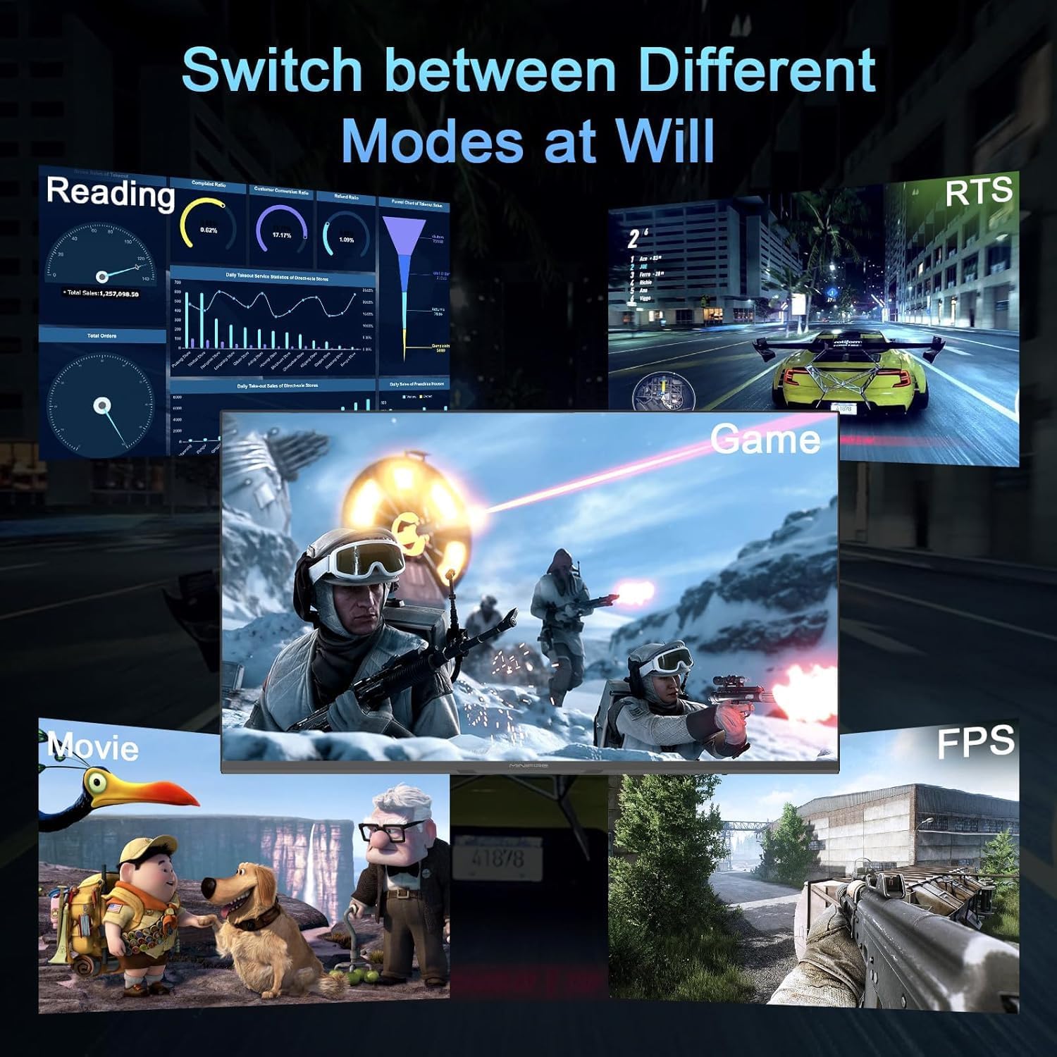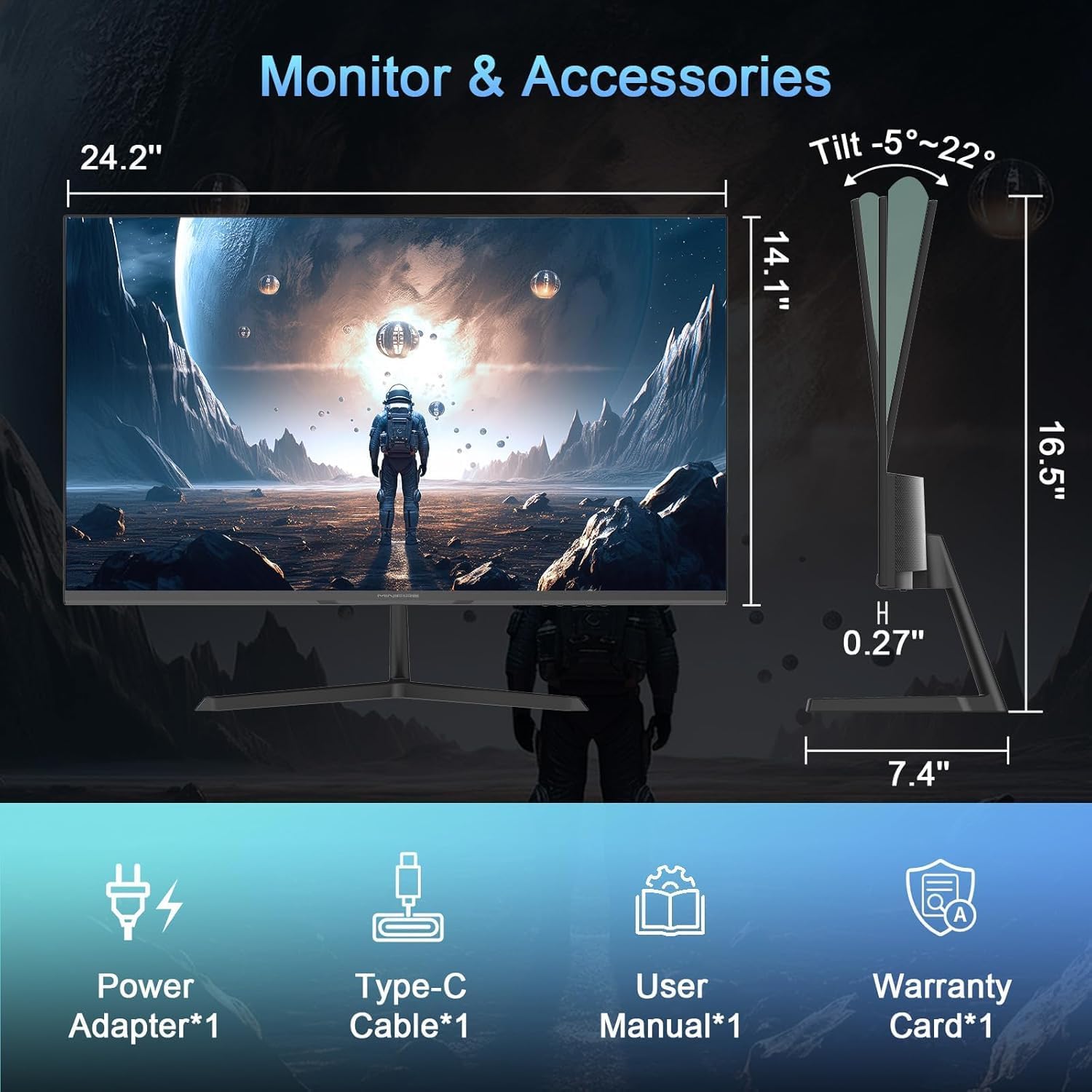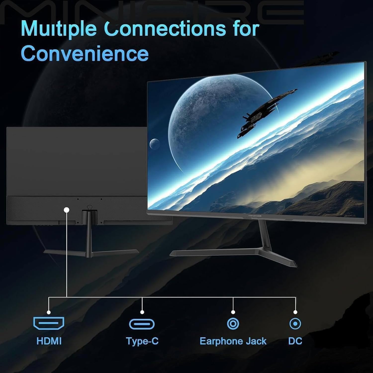 Minifire - Монитор 27-инчов екран с безрамков дизайн, IPS, 100Hz, USB Type-C, FHD(1080P), sRGB110%, 300 нита, FreeSync, Eye-Care, HDMI USB Type-C портове, поддържа VESA - Черен