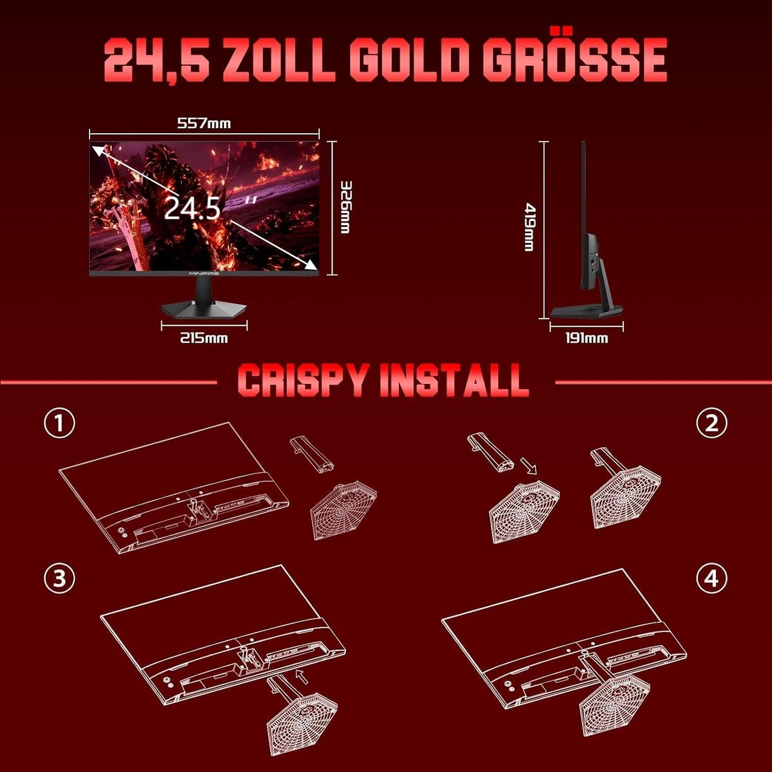 Minifire 24.5-инчов FHD геймърски монитор - 200Hz 1ms с бърз IPS панел | 1080P геймърски компютърен монитор с AMD Free Sync, 120% sRGB, сертификат German Rhine Eye Care | HDMI 2.0 x 2 и DP 1.4 x 1 (MFG25X1)