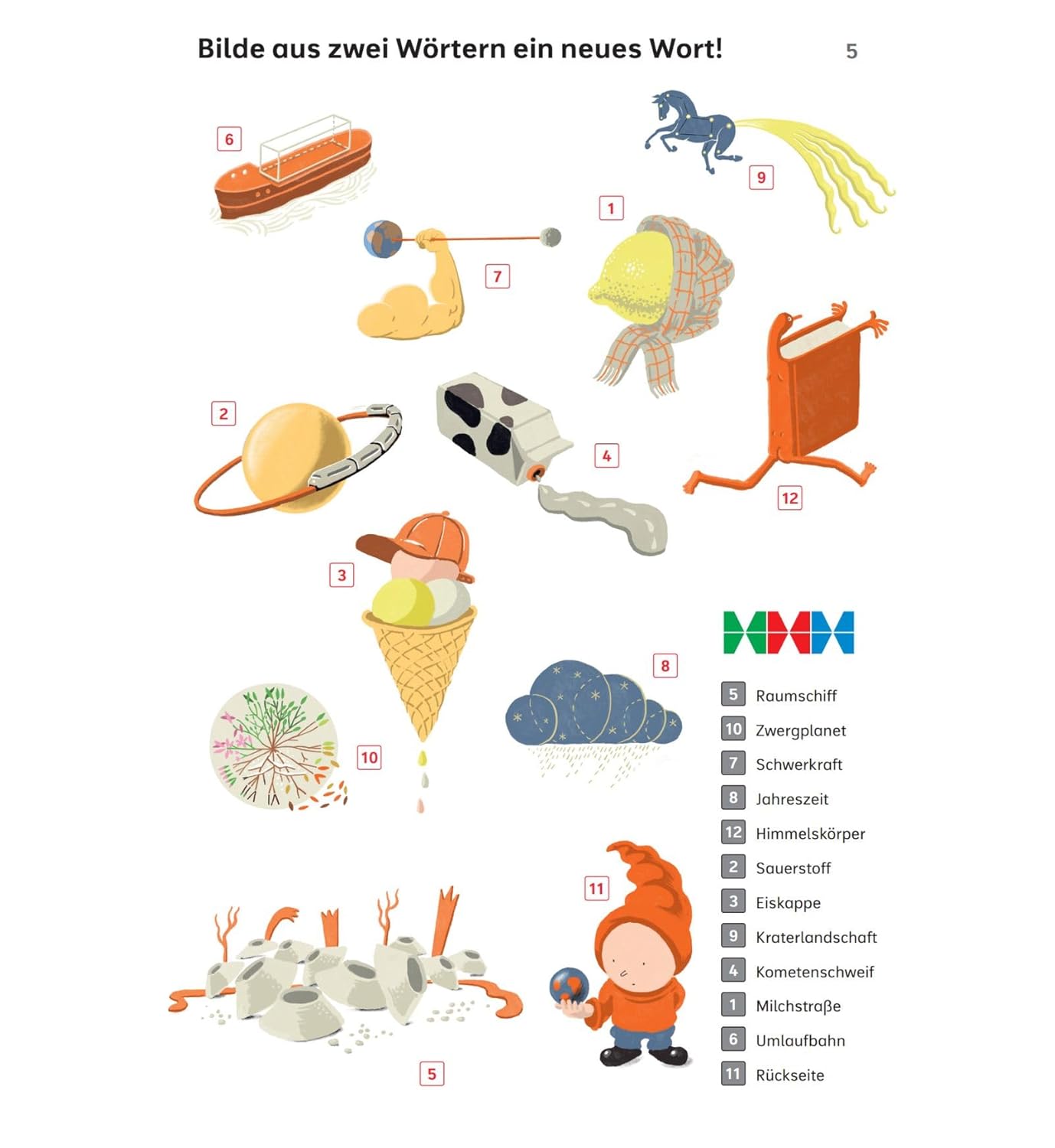 Книжката с дейности miniLÜK „ КАКВО ПРЕДСТАВЛЯВА КАКВИ ПЛАНЕТИ “ е пълна с невероятни космически знания! Колко дълго трае зимата на Уран? Каква е разликата между газова планета и скалиста планета? Какво е Млечният път? Освен това, математическите задачи се решават с помощта на звездни съзвездия, четенето се практикува почти със скоростта на светлината, а НЛО се забелязват благодарение на логическото мислене. Разнообразните експедиции miniLÜK около нашата вселена предават фактически и специализирани знания по типично игрив начин. 3… 2… 1… На място, готови, тръгваме!