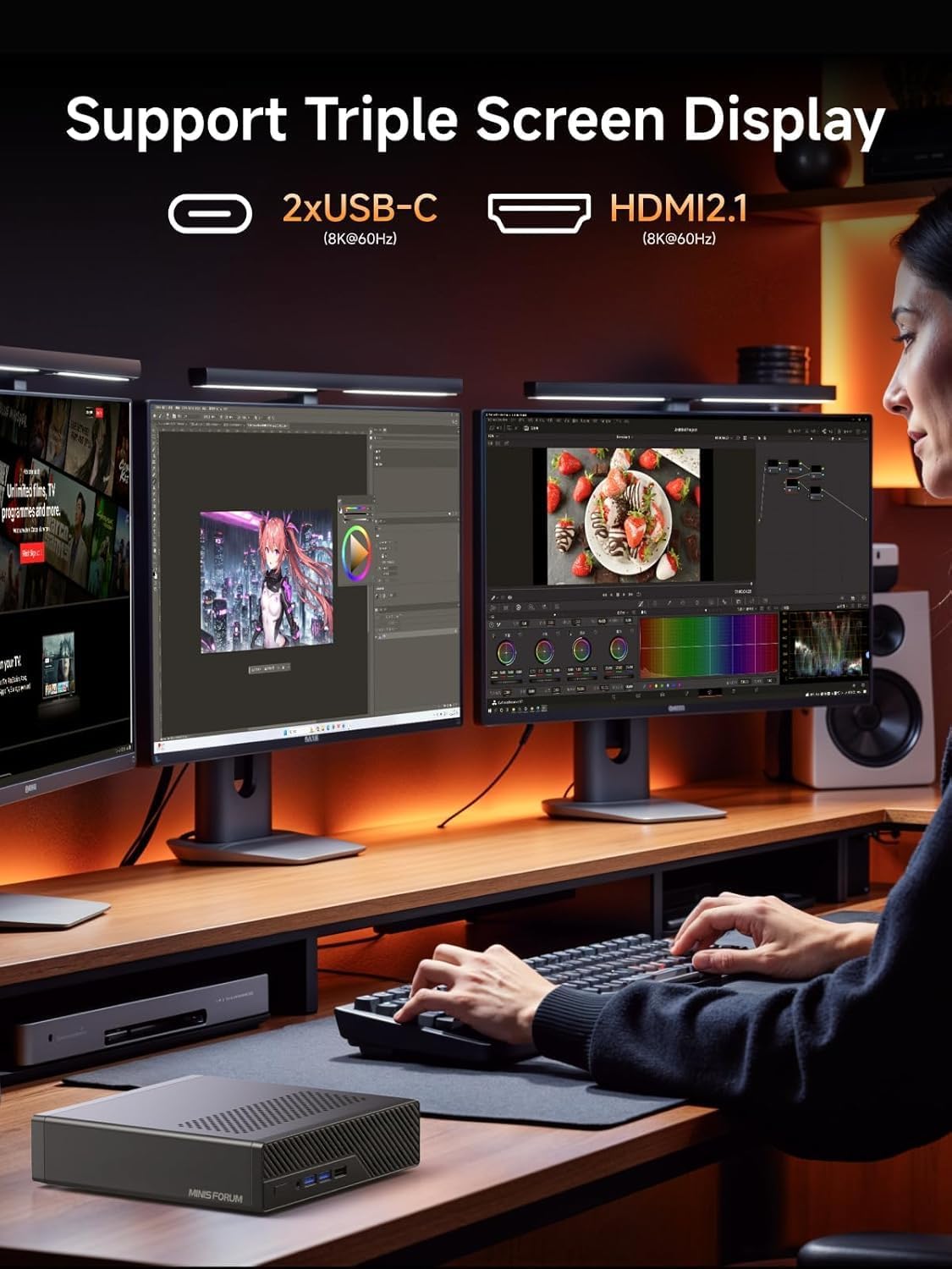 • 【Голям капацитет】MINIS FORUM XI Pro поддържа два DDR5 SO-DIMM слота (до 64 GB x 2) и три M.2 2280 SSD слота. Предварително инсталираните 96 GB RAM и 2 TB SSD (до 4 TB всеки) осигуряват безпроблемна работа на множество взискателни приложения. Слотът за SD карта позволява и бързо възпроизвеждане на снимки и видео, елиминирайки нуждата от допълнителен четец на карти.