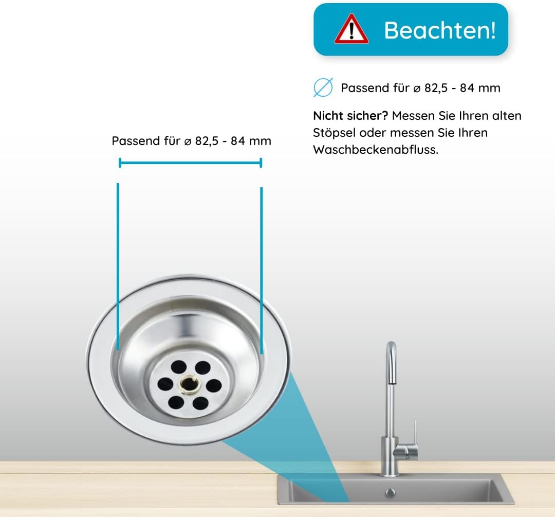 • Предлага се в 2 размера - Цедката за мивка е подходяща за повечето мивки. Изберете правилния размер за вас! Нашата тапа за източване на цедка за мивка от неръждаема стомана се предлага в най-често срещаните размери: 79 мм, 82 мм.