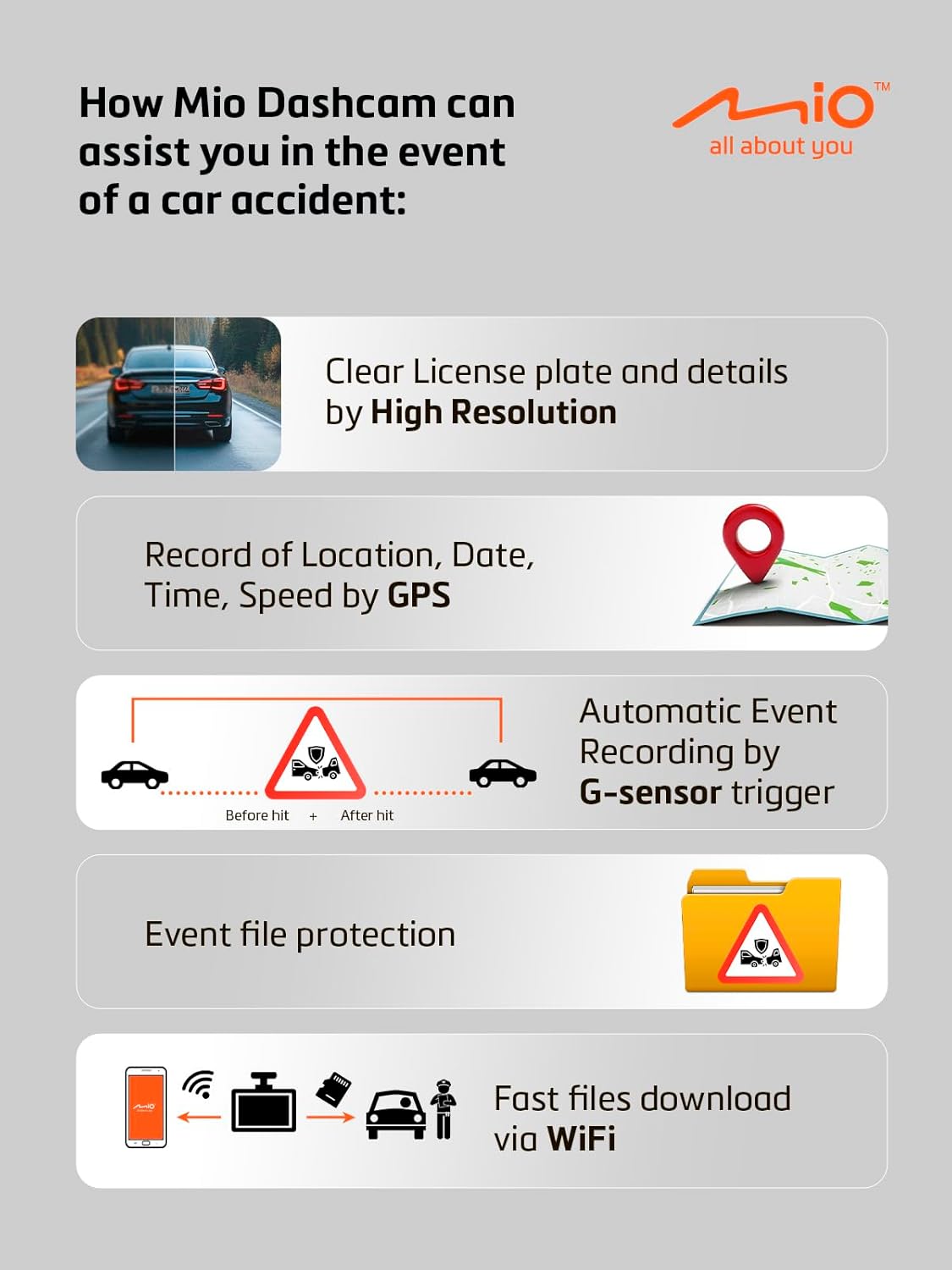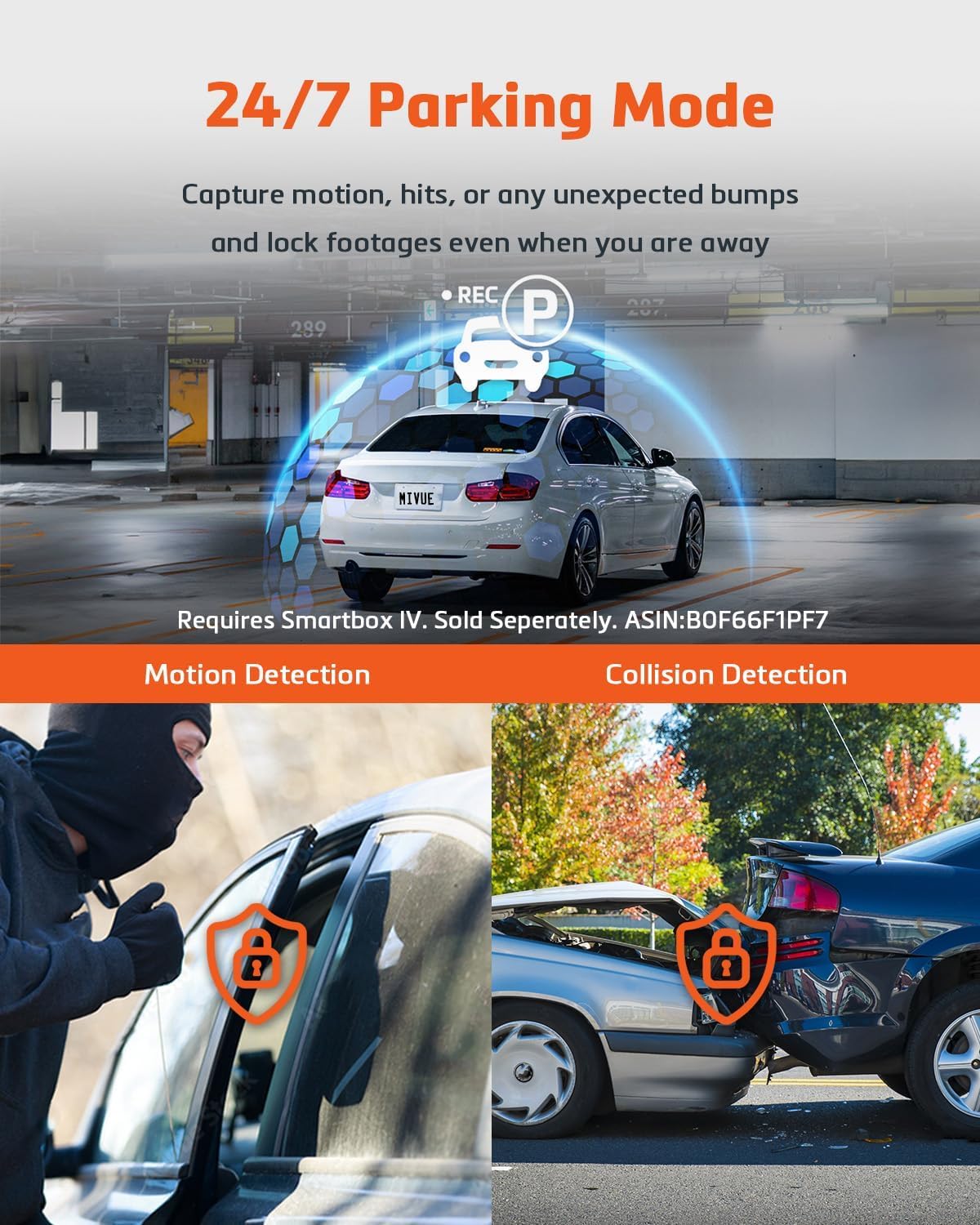 Mit der neuesten Bewegungserkennungstechnologie kann die MiVue 955W Pro automatisch Videos aufzeichnen, wenn eine Bewegung in der Nähe des Fahrzeugs erkannt wird. Damit können Sie auch Beweise sammeln, auch wenn sie nicht im Auto sind.