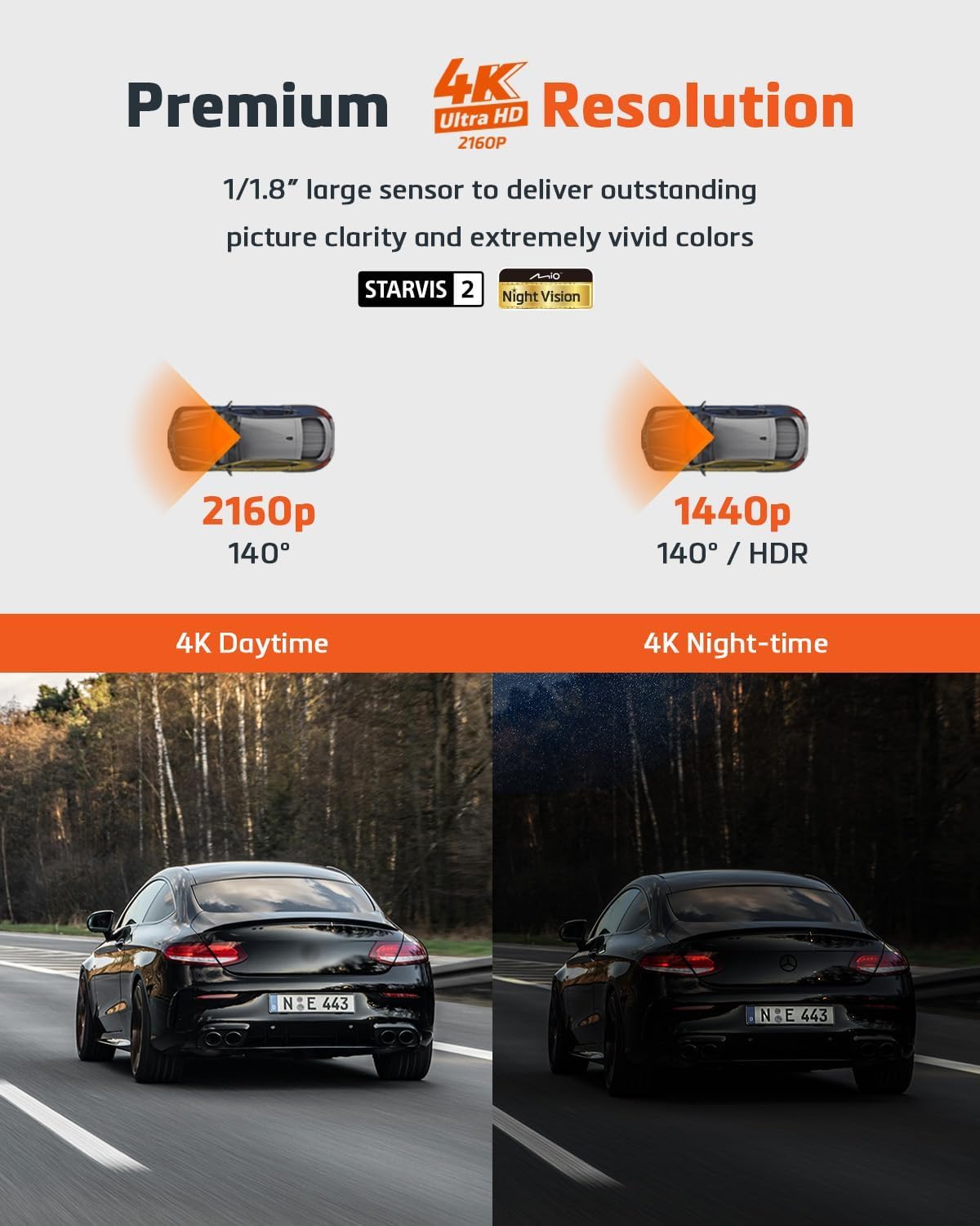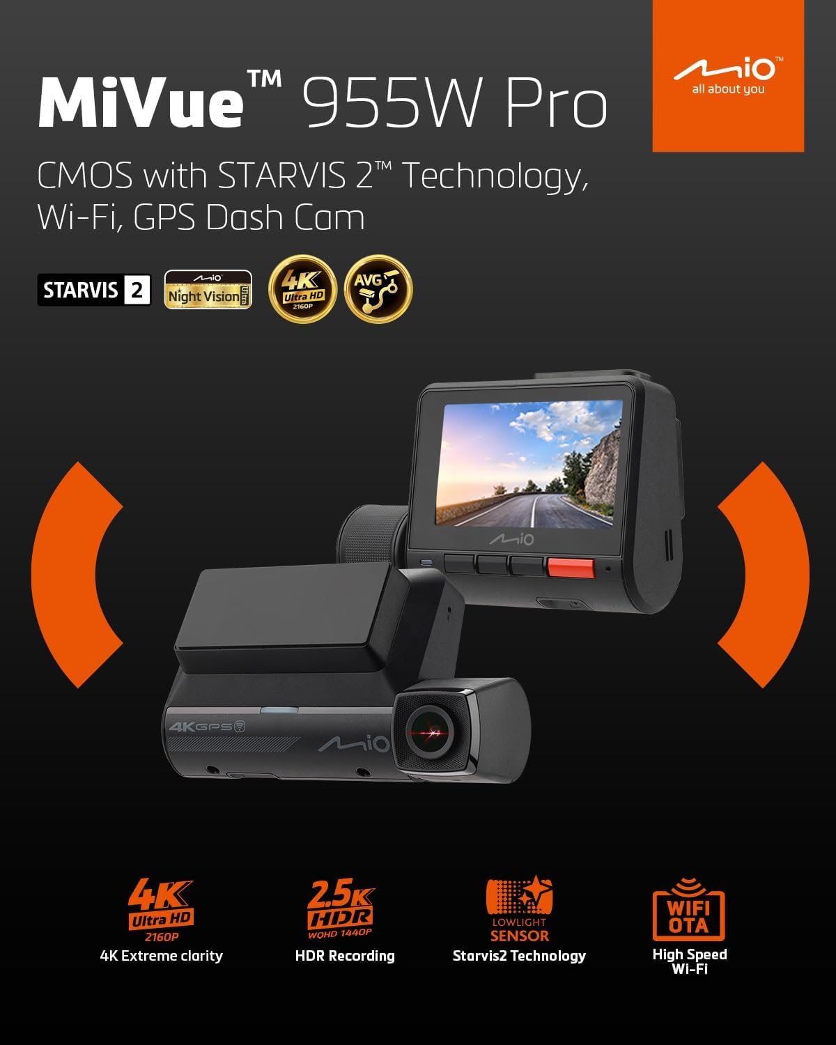 MiVue 955WD Pro предлага изключителна яснота благодарение на своята 4K резолюция, която е четири пъти по-висока от Full HD. С 4K запис, всеки детайл е увеличен и остава видим, осигурявайки най-високо ниво на безопасност при шофиране.