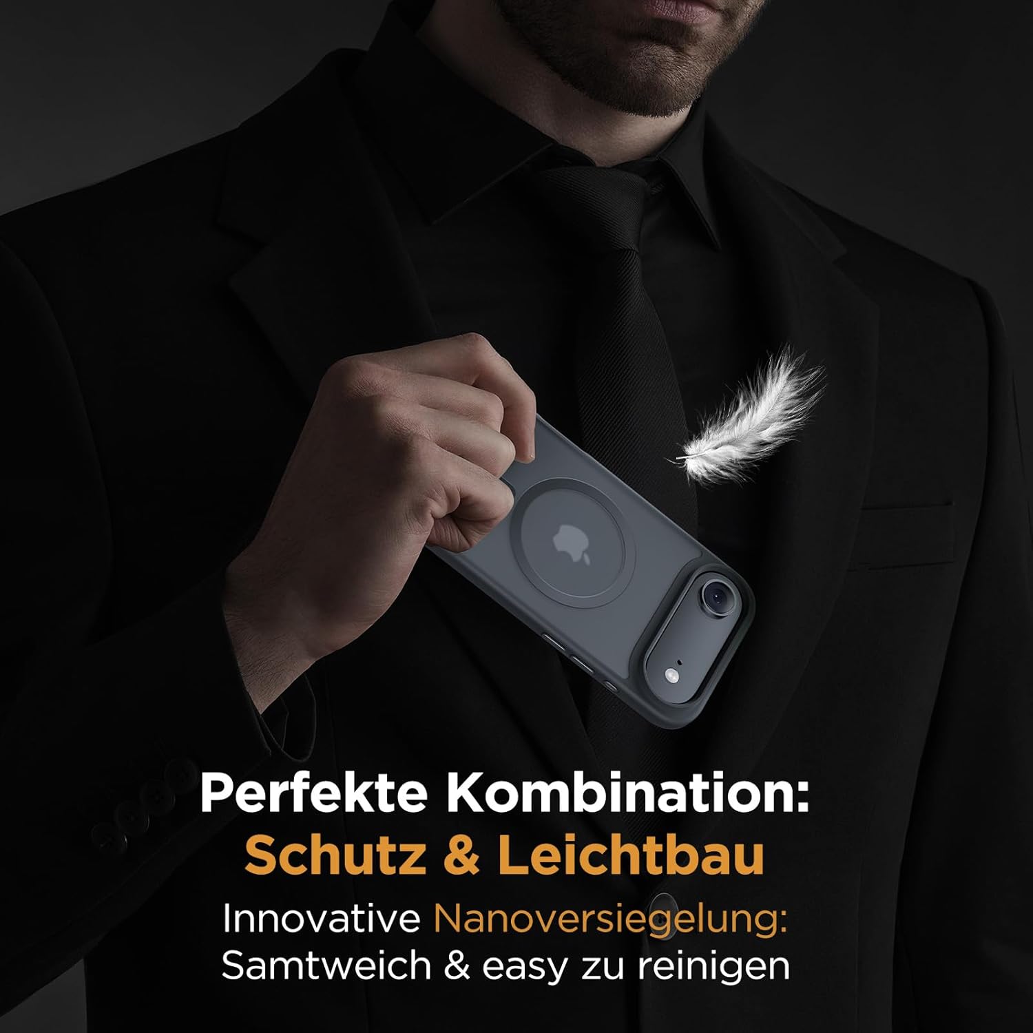 • Тънък дизайн и първокласно усещане: Този калъф за iPhone 17 съчетава тънкост и оптимална защита благодарение на удароустойчивата технология и ергономичния дизайн. Иновативното нанопокритие осигурява дълготрайна защита от надраскване и ефективно отблъсква пръстови отпечатъци – мекият предпазител осигурява копринено мек захват.