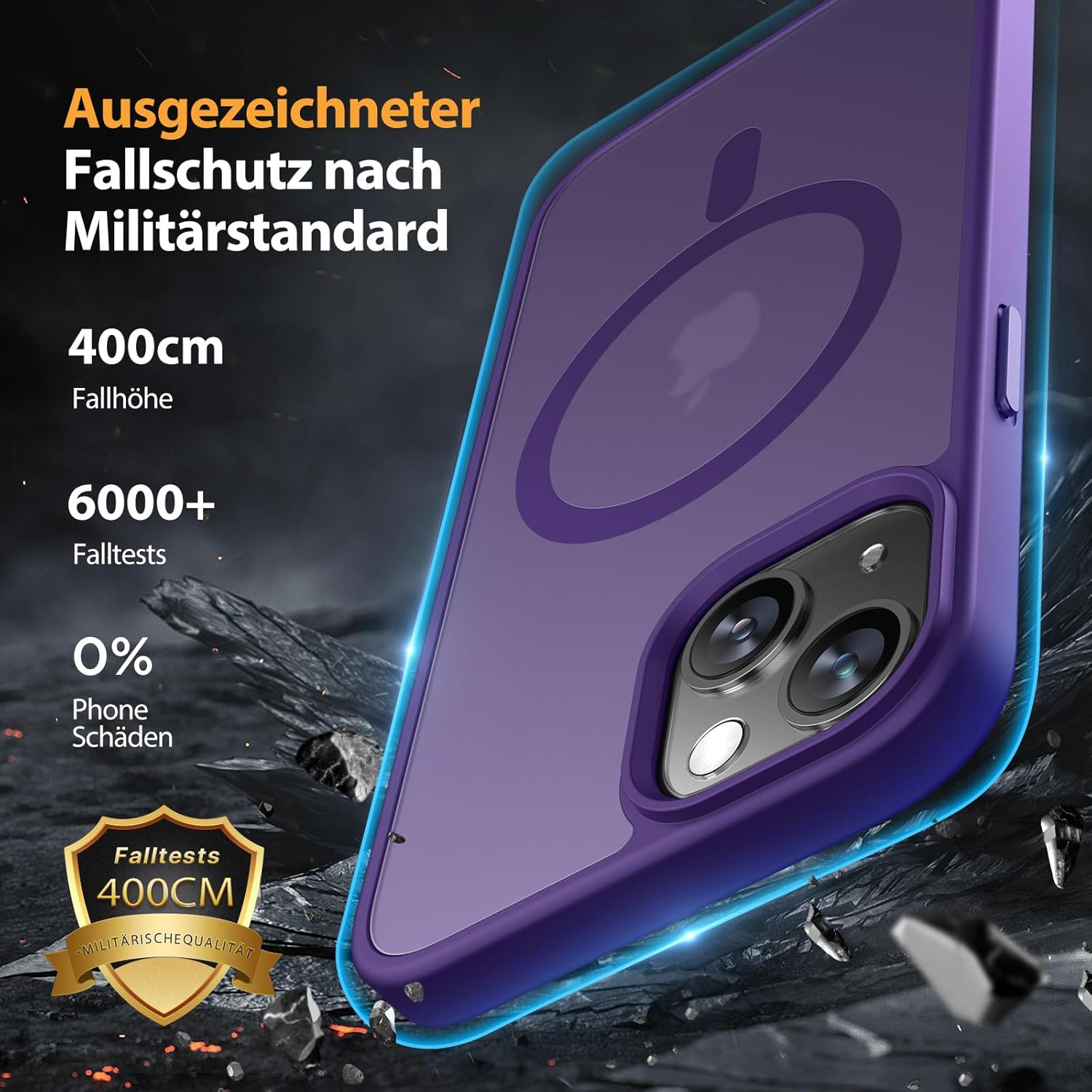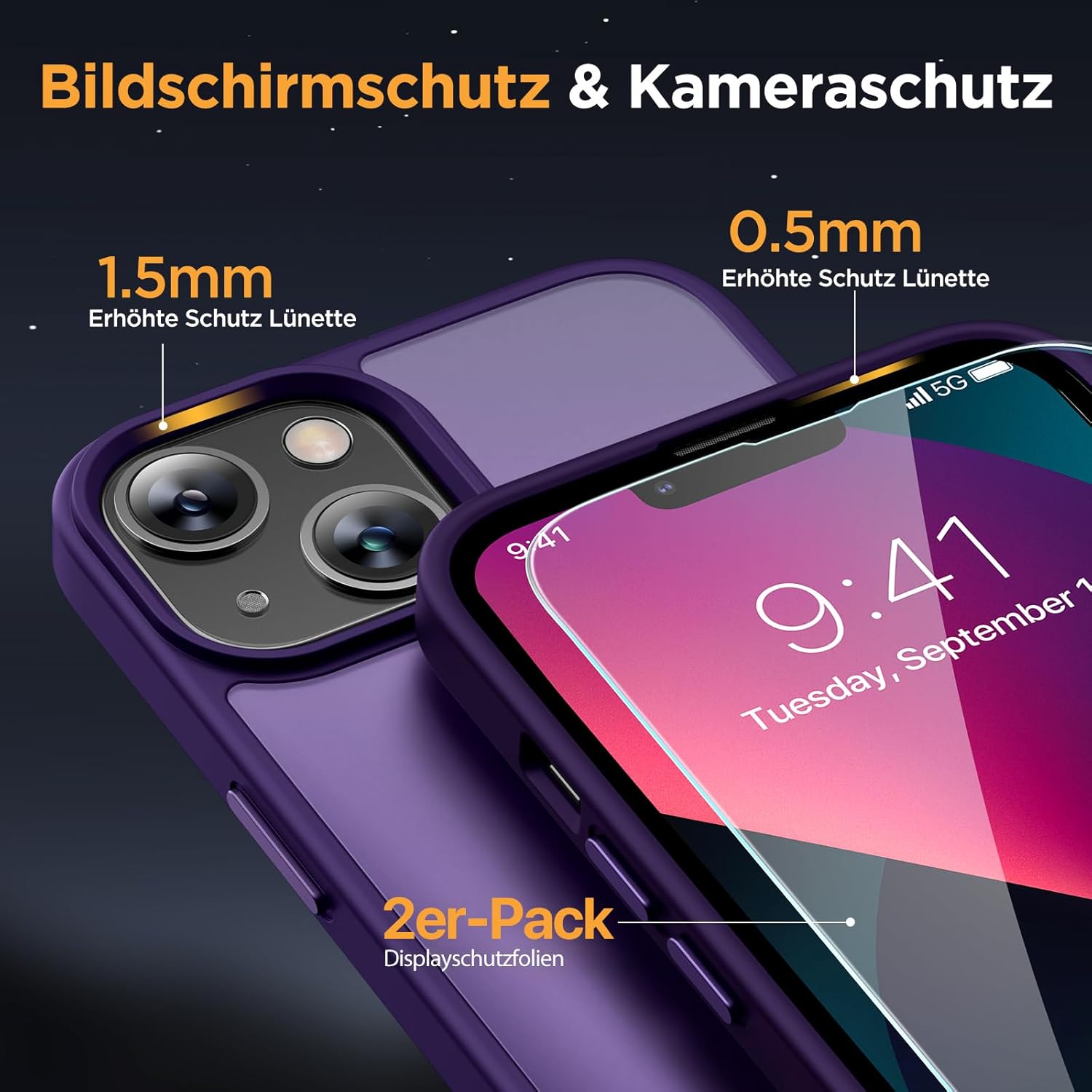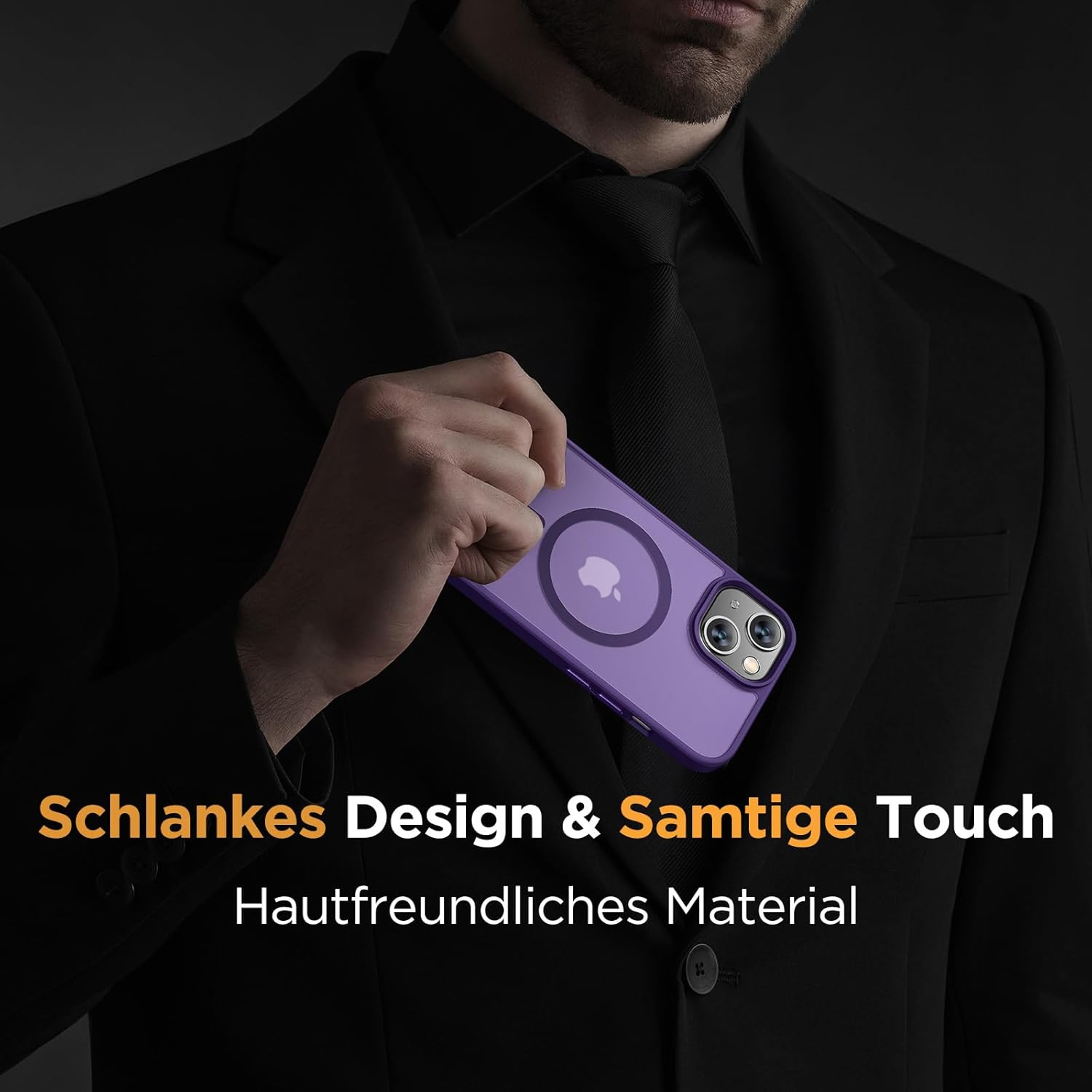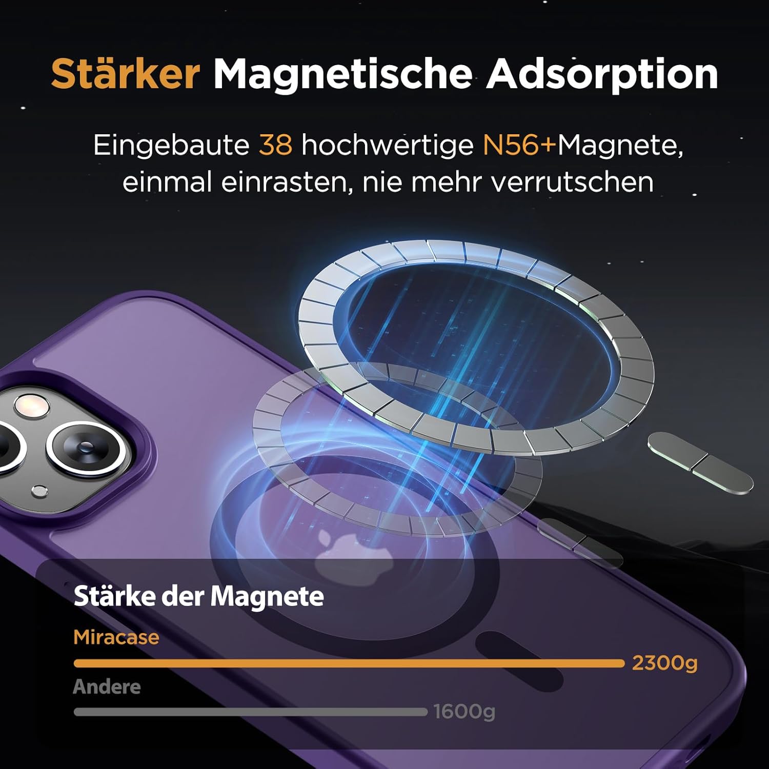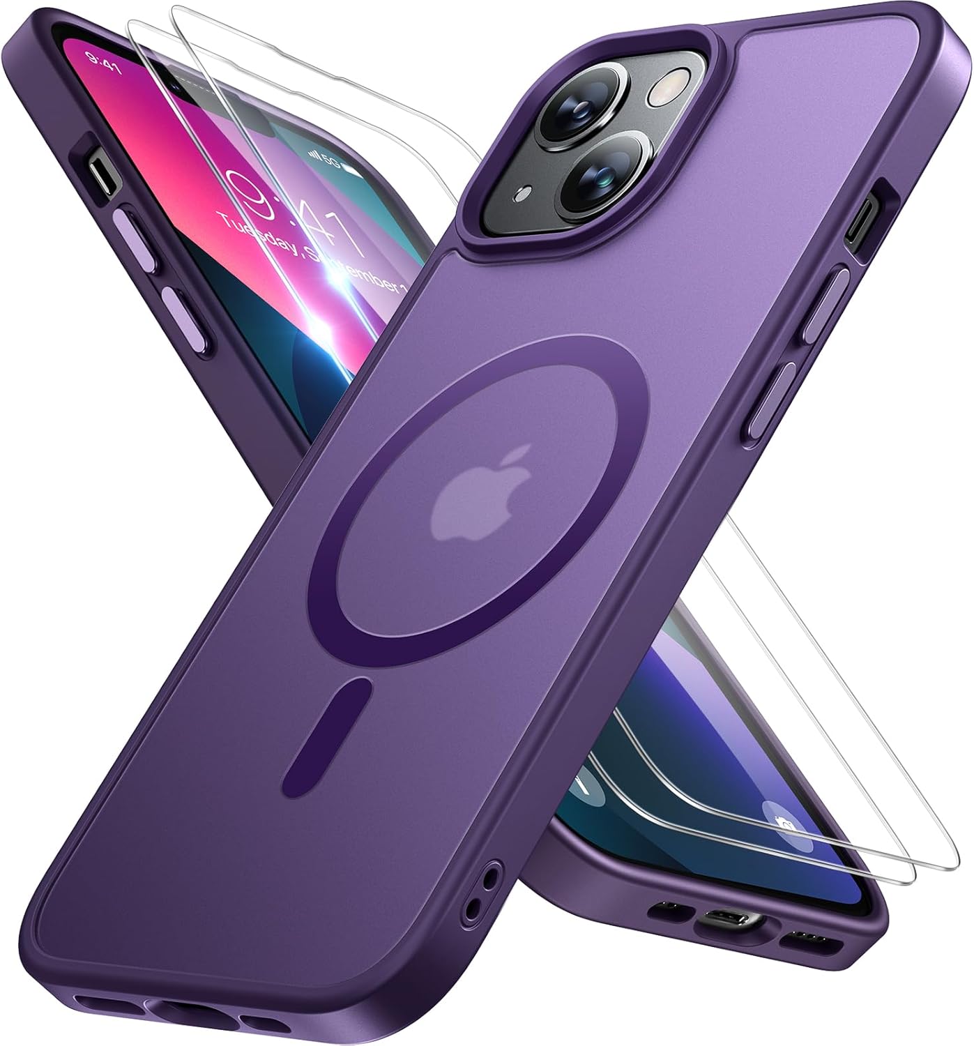 Miracase Magnetic Case за iPhone 13 с MagSafe [с 2 защитни стъкла] Военна защита, удароустойчив, устойчив на надраскване, против пръстови отпечатъци, тънък кадифен калъф за мобилен телефон за iPhone 13 6.1 инча