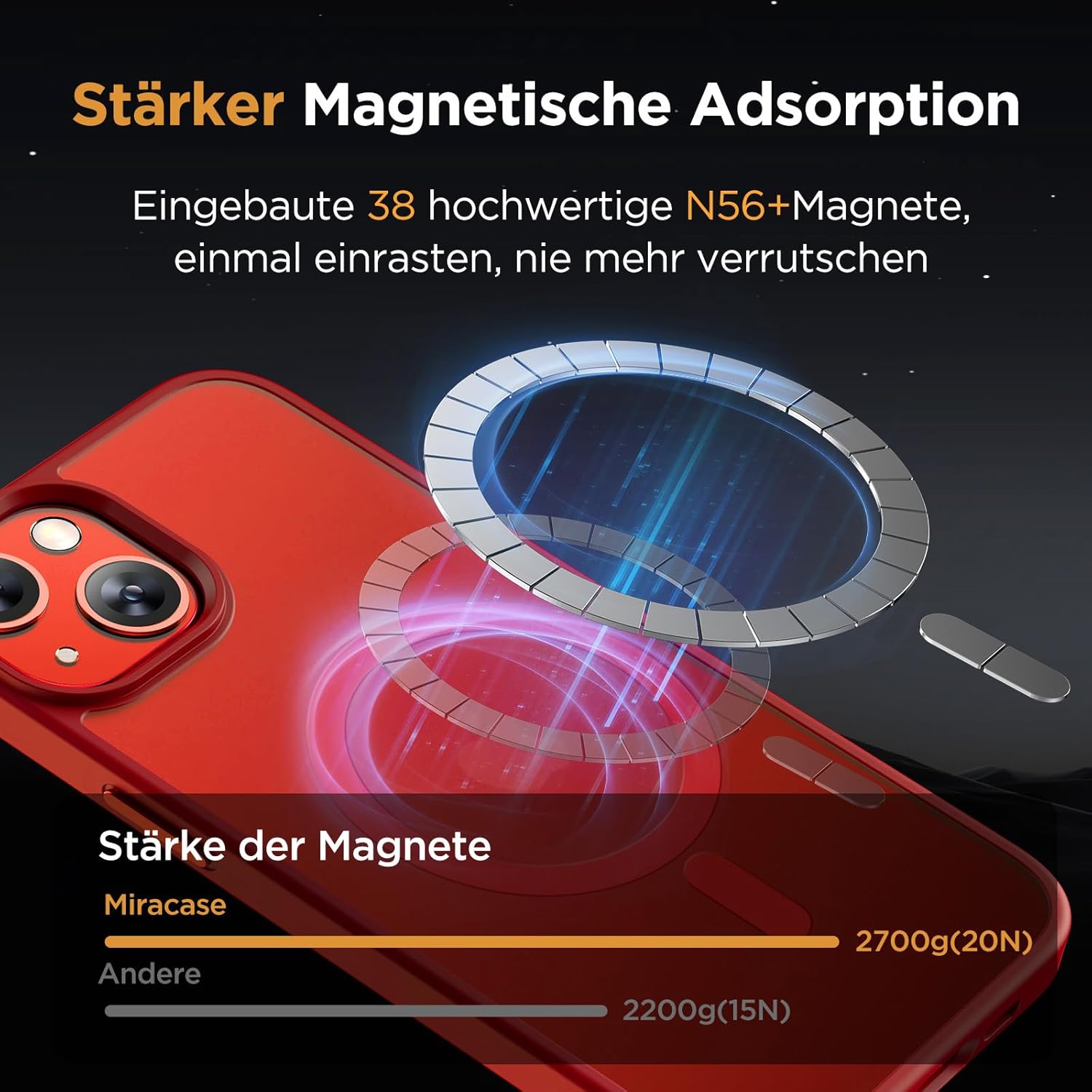 Miracase Magnetic Case за iPhone 14 с MagSafe [с 2 защитни стъкла], военна защита, удароустойчив, устойчив на надраскване, против пръстови отпечатъци, тънък кадифен калъф за мобилен телефон за iPhone 14 6.1 инча