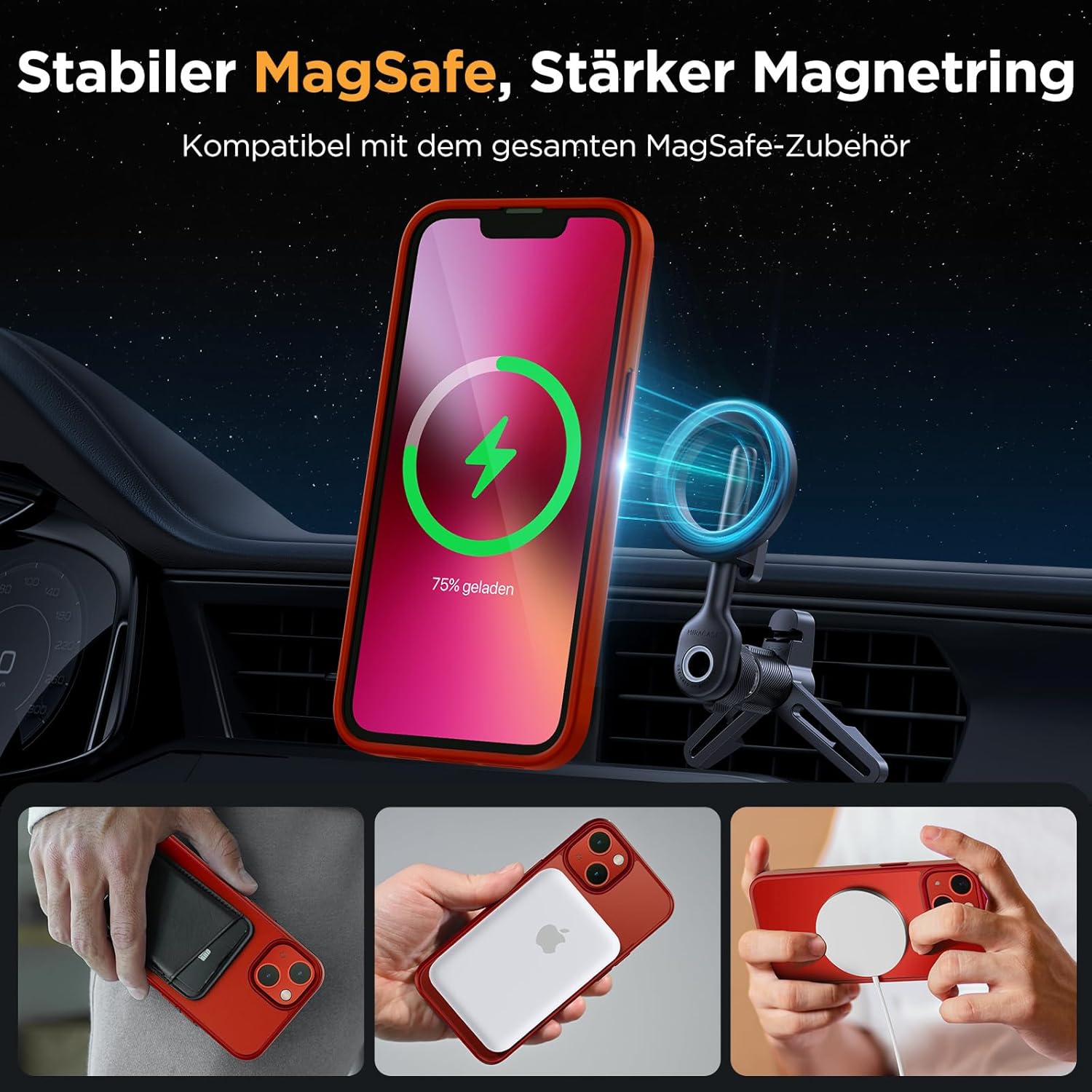 • Подобрена съвместимост с MagSafe: Специално проектиран калъф за iPhone 17 (6,3 инча): Интегрирана магнитна система 38 × N56+ с иновативен фокусен пръстен – 55% по-силно залепване от стандартните калъфи. Безпроблемно подравняване със зарядни устройства MagSafe за сигурно бързо зареждане от 25 W+, както и стабилно задържане на всички устройства MagSafe.