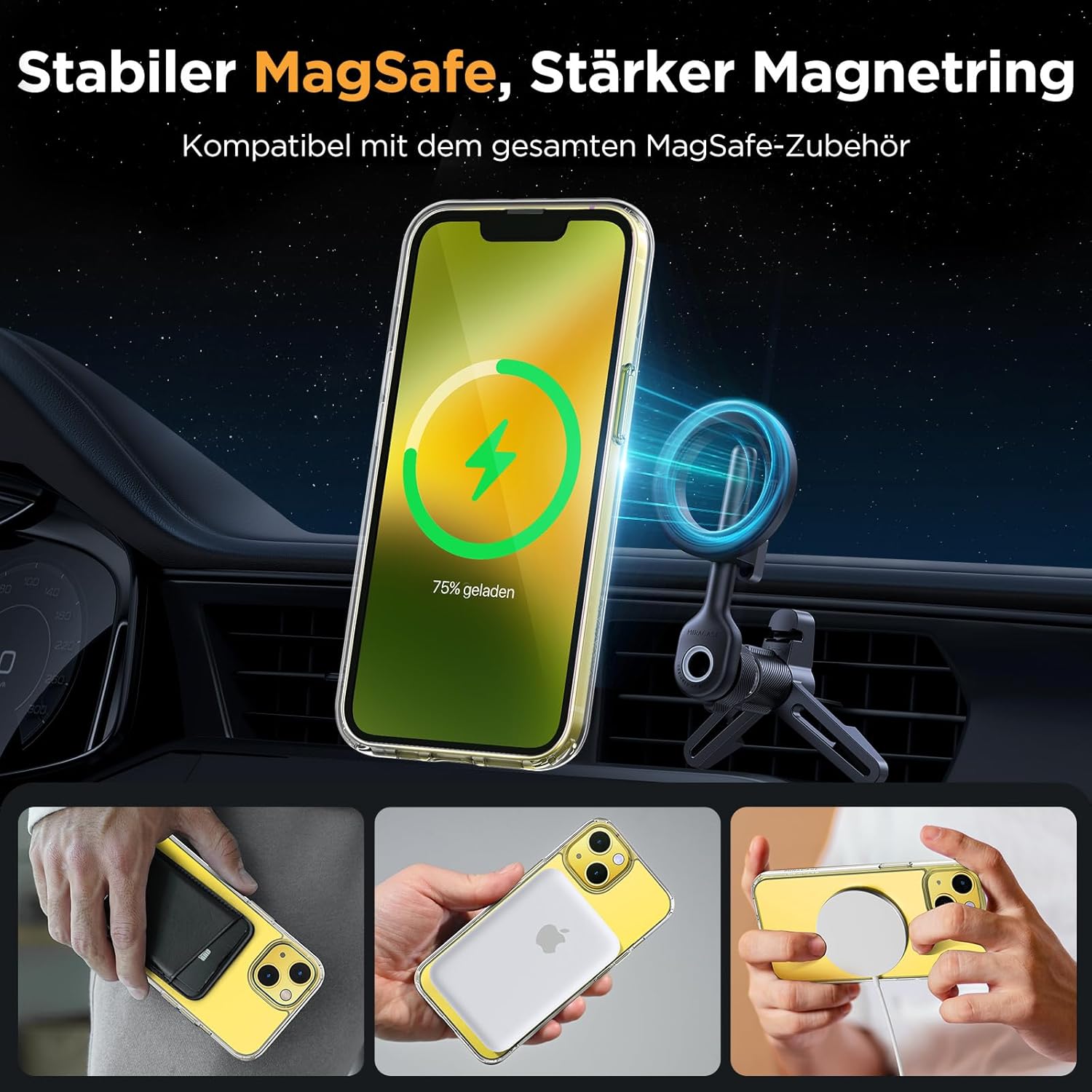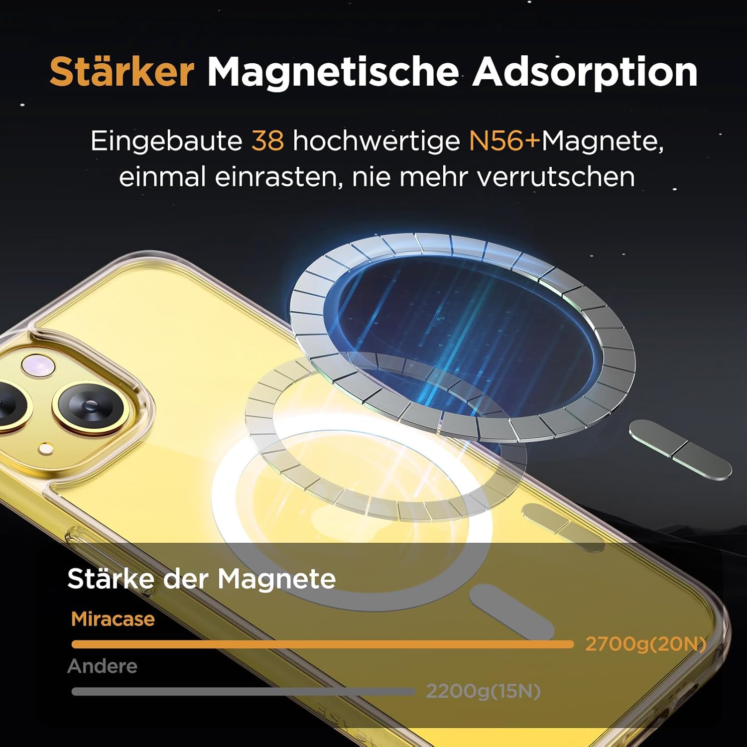 • Подобрена съвместимост с MagSafe: Специално проектиран калъф за iPhone 17 (6,3 инча): Интегрирана магнитна система 38 × N56+ с иновативен фокусен пръстен – 55% по-силно залепване от стандартните калъфи. Безпроблемно подравняване със зарядни устройства MagSafe за сигурно бързо зареждане от 25 W+, както и стабилно задържане на всички устройства MagSafe.