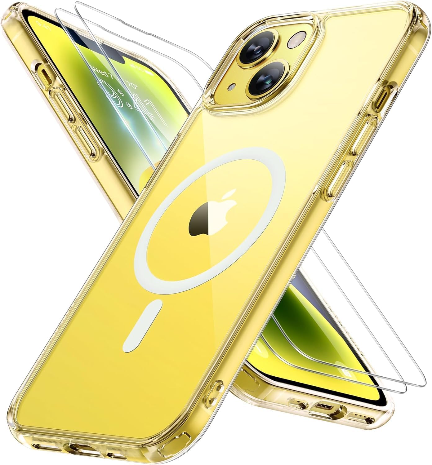 Miracase Magnetic Case за iPhone 14, съвместим с MagSafe [с 2 защитни стъкла], военен стандарт за защита, тънък дизайн, против пръстови отпечатъци, прозрачен, за iPhone 14 6.1 инча