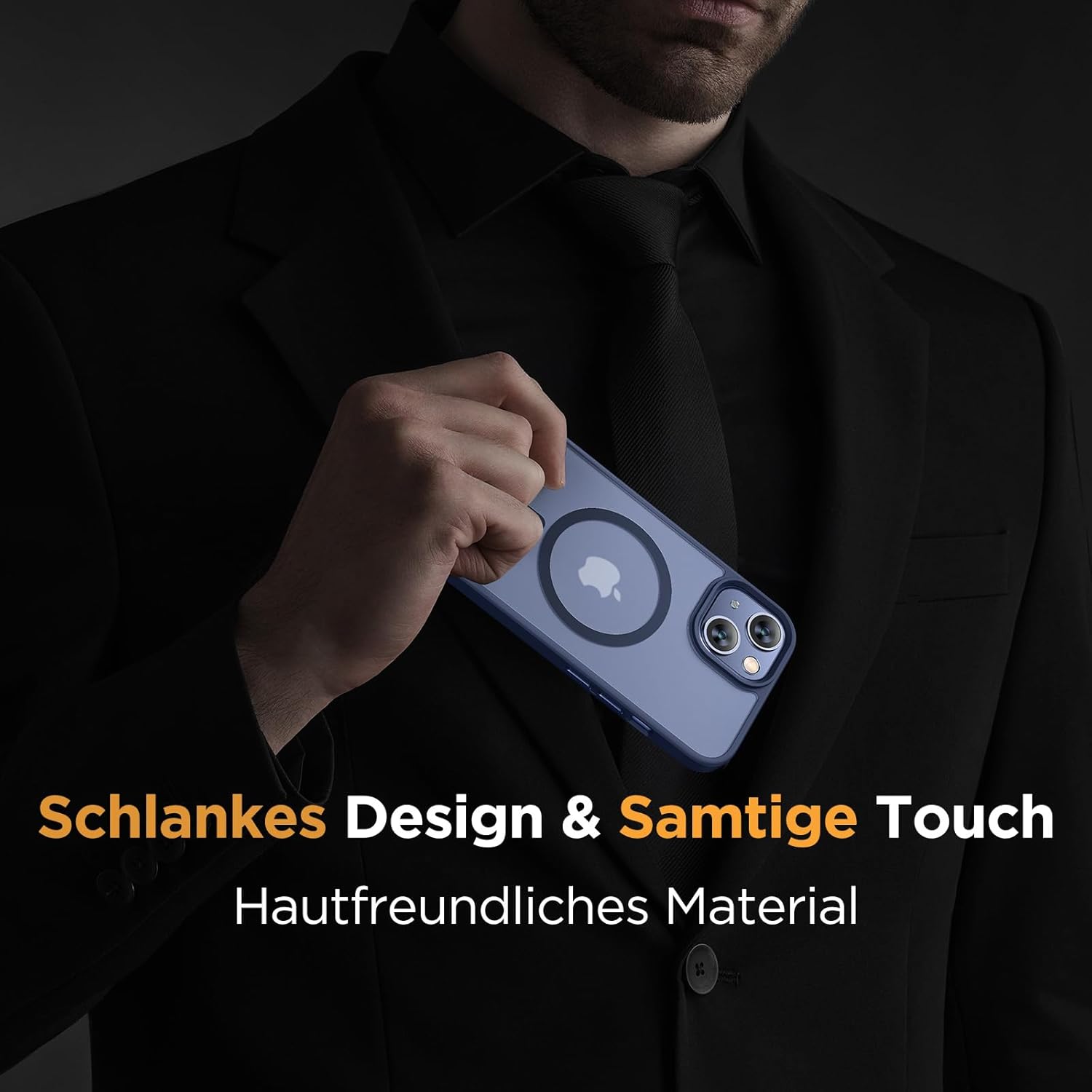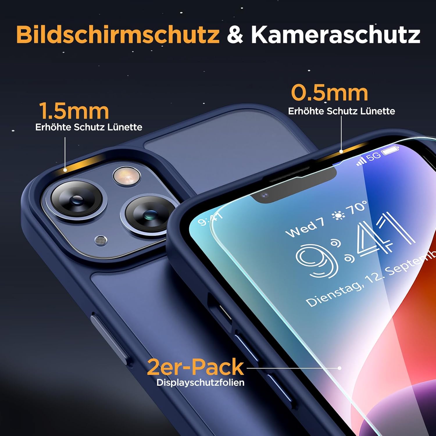 Miracase Magnetic Case за iPhone 14, съвместим с MagSafe [с 2 защитни стъкла], военен стандарт за защита, тънък дизайн, защита от пръстови отпечатъци, за iPhone 14 6.1 инча, тъмносин