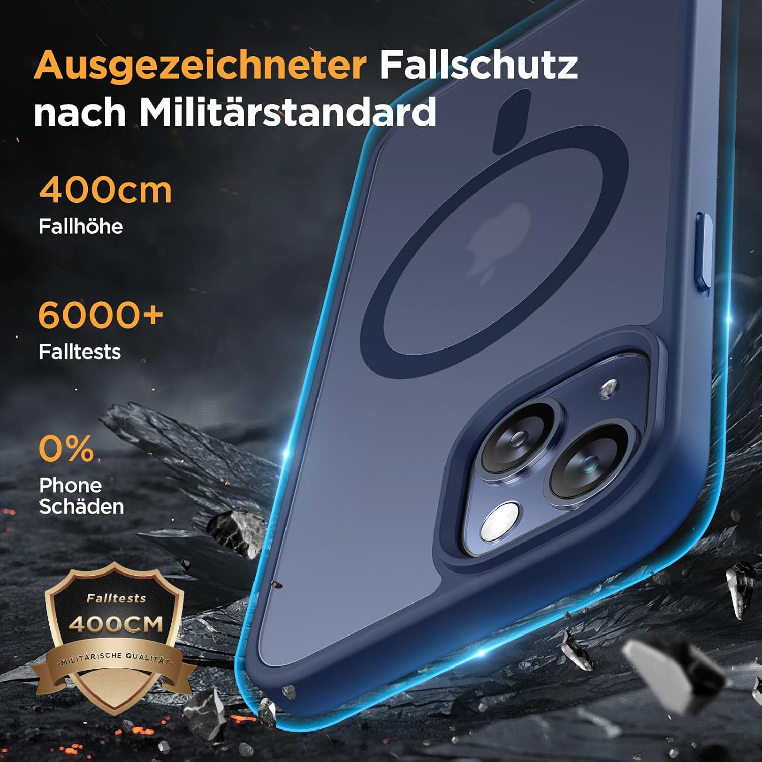 • Защита от падане от военен клас: Превишава военните стандарти MIL-STD-810G: Усъвършенствана технология за устойчивост на удари в четирите ъгъла, комбинирана с 360° въздушна възглавница отвътре и 3-слойна термопластична полиуретанова (TPU) подплата. Осигурява отлична защита срещу падания от височина до 4 метра – потвърдено от над 6500+ теста за падане в над 40 тестови среди.