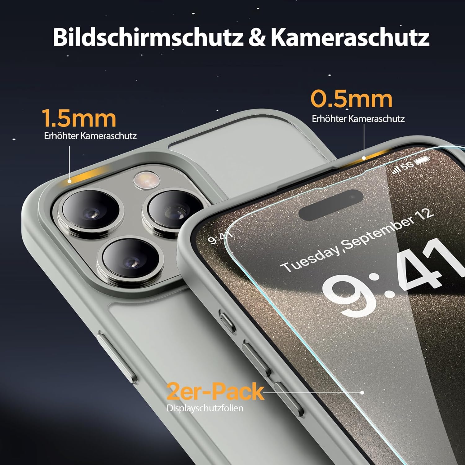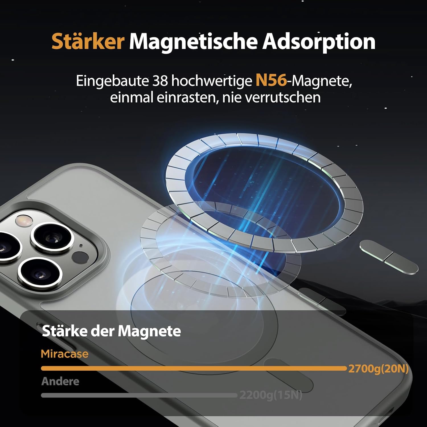 Miracase Magnetic Case за iPhone 15 Pro, съвместим с MagSafe [с 2 защитни стъкла], тънък дизайн, военен стандарт за защита, против пръстови отпечатъци, за iPhone 15 Pro 6.1 инча