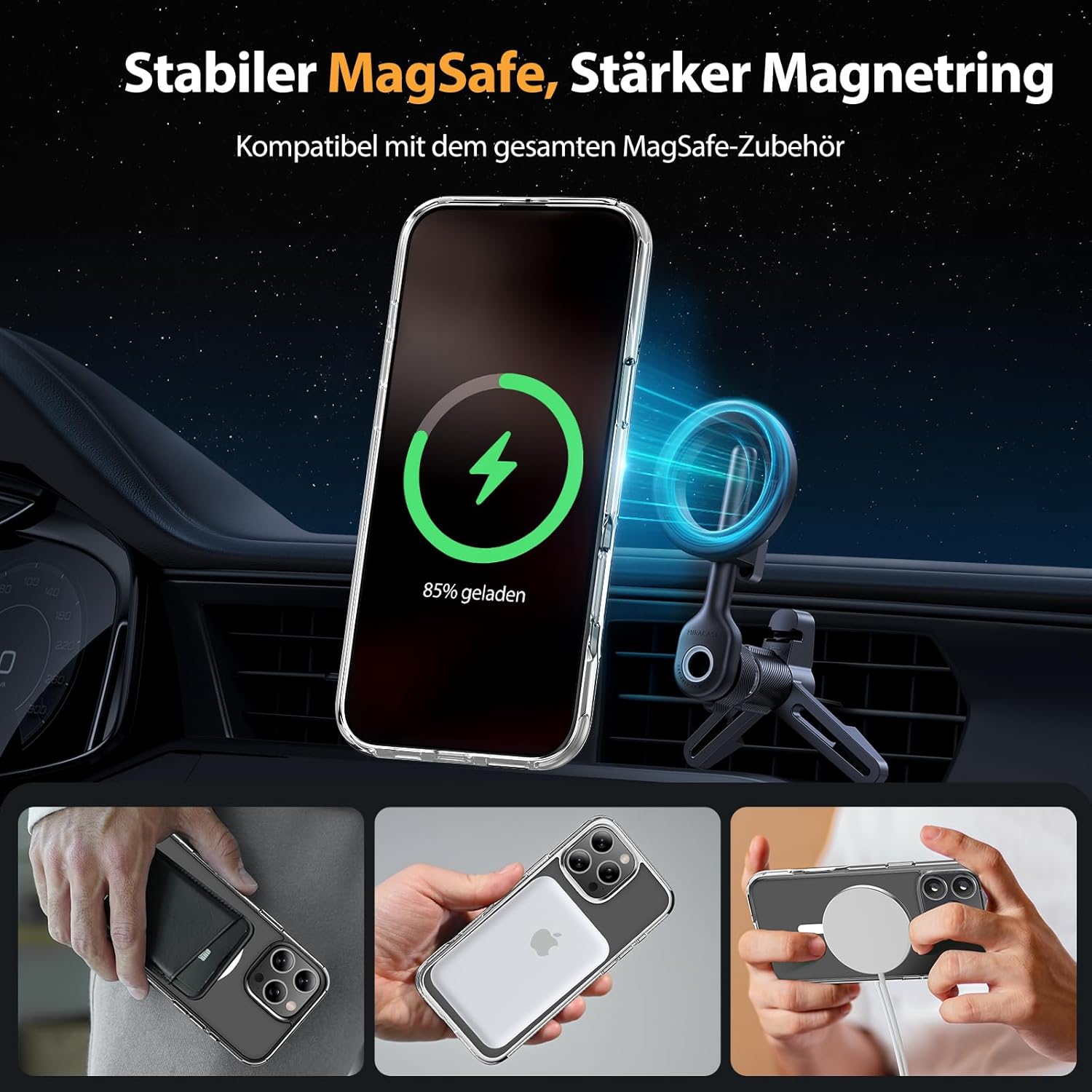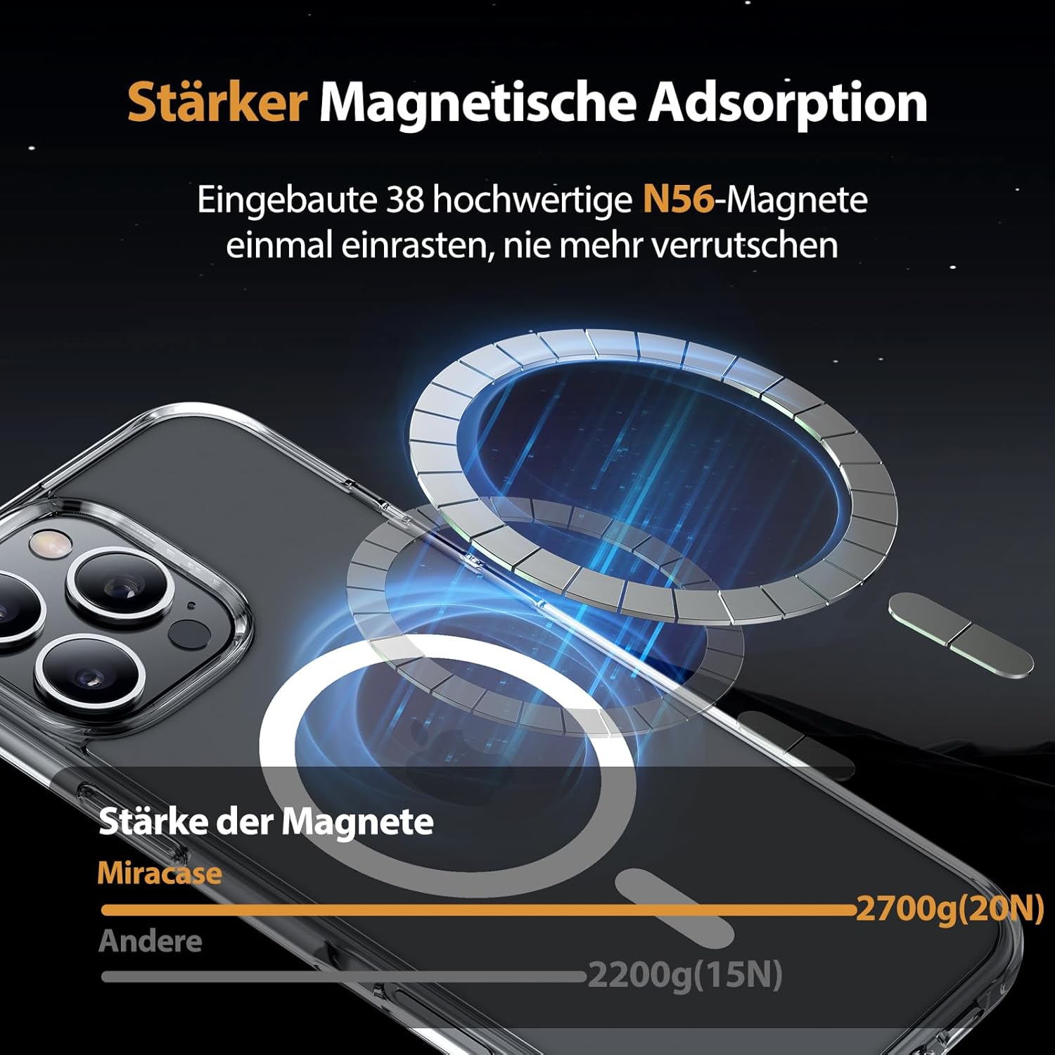 • Подобрена съвместимост с MagSafe: Специално проектиран калъф за iPhone 17 (6,3 инча): Интегрирана магнитна система 38 × N56+ с иновативен фокусен пръстен – 55% по-силно залепване от стандартните калъфи. Безпроблемно подравняване със зарядни устройства MagSafe за сигурно бързо зареждане от 25 W+, както и стабилно задържане на всички устройства MagSafe.