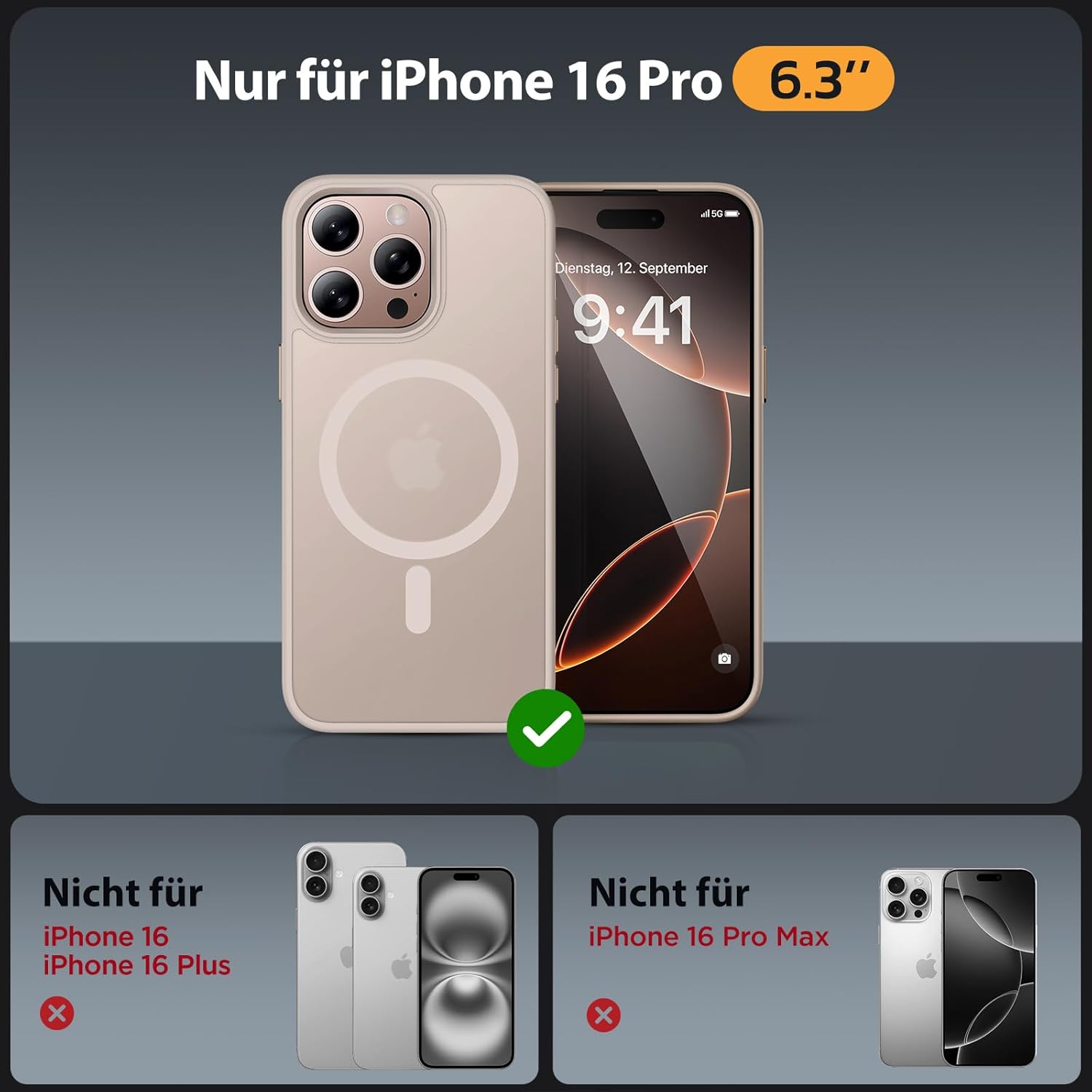 Miracase Magnetic Case за iPhone 16 Pro с MagSafe [с 2 защитни стъкла], военна защита, удароустойчив, устойчив на надраскване, против пръстови отпечатъци, тънък кадифен калъф за мобилен телефон за iPhone 16 Pro