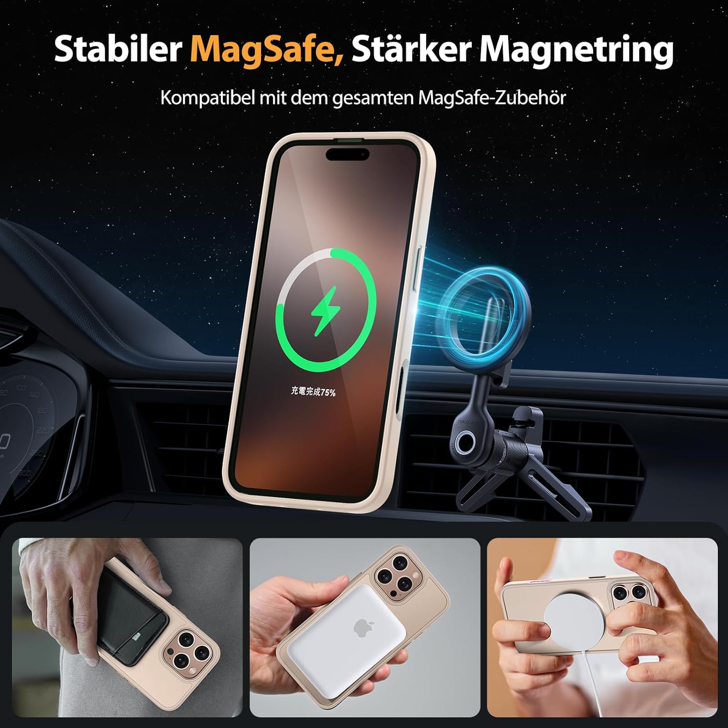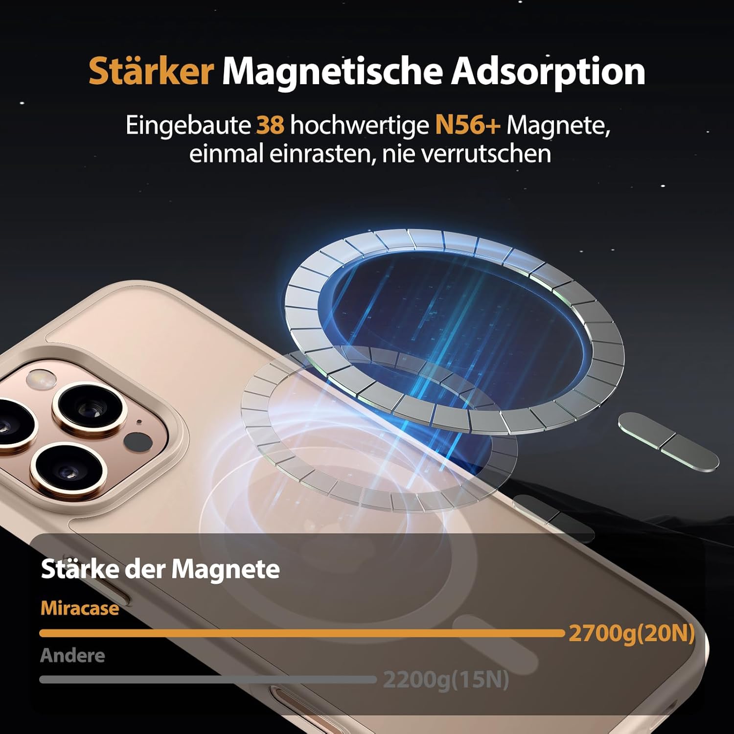 • Подобрена съвместимост с MagSafe: Специално проектиран калъф за iPhone 17 (6,3 инча): Интегрирана магнитна система 38 × N56+ с иновативен фокусен пръстен – 55% по-силно залепване от стандартните калъфи. Безпроблемно подравняване със зарядни устройства MagSafe за сигурно бързо зареждане от 25 W+, както и стабилно задържане на всички устройства MagSafe.