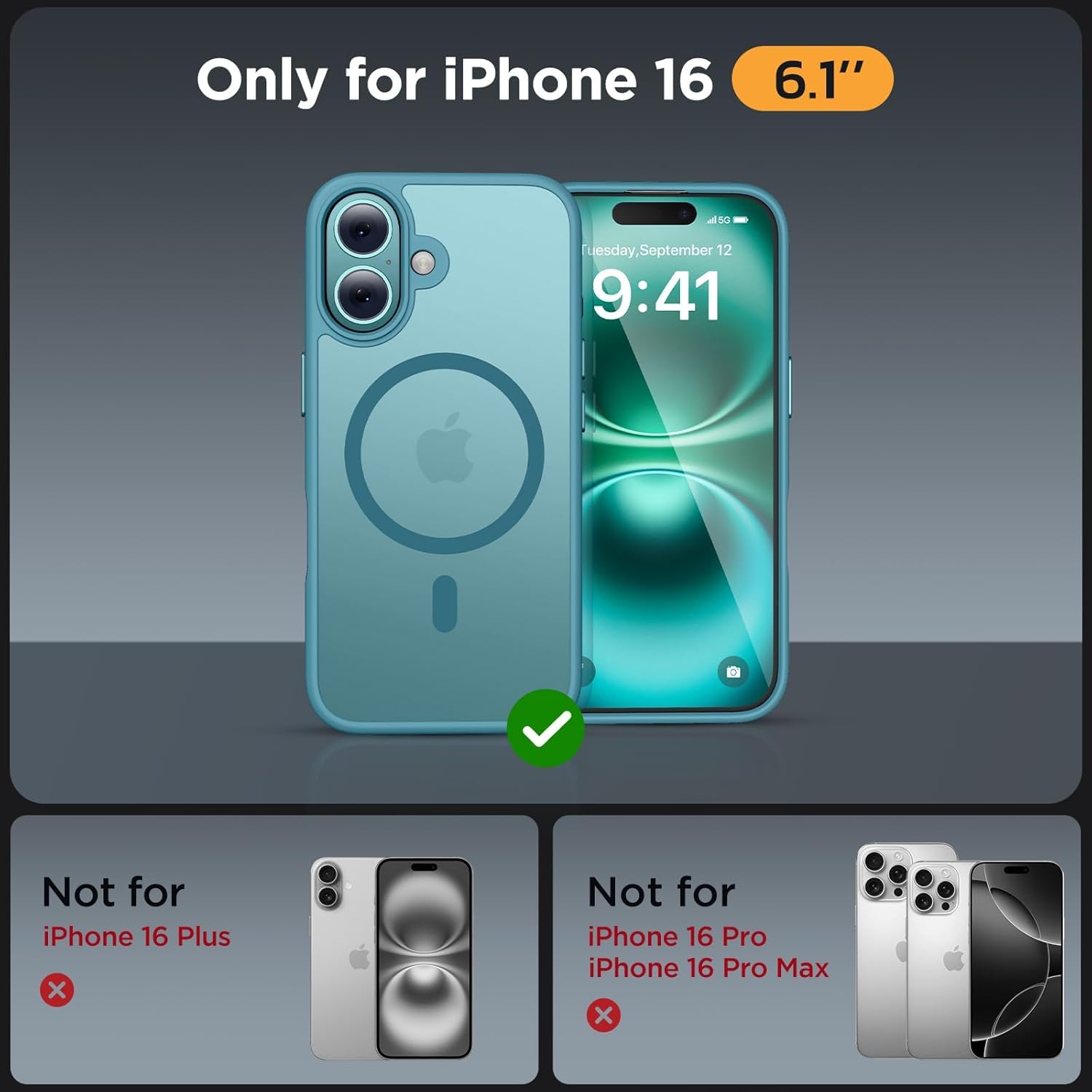 Miracase Magnetic Case за iPhone 16 с MagSafe [с 2 защитни стъкла], военна защита, удароустойчив, устойчив на надраскване, против пръстови отпечатъци, тънък кадифен калъф за мобилен телефон за iPhone 16 6.1 инча
