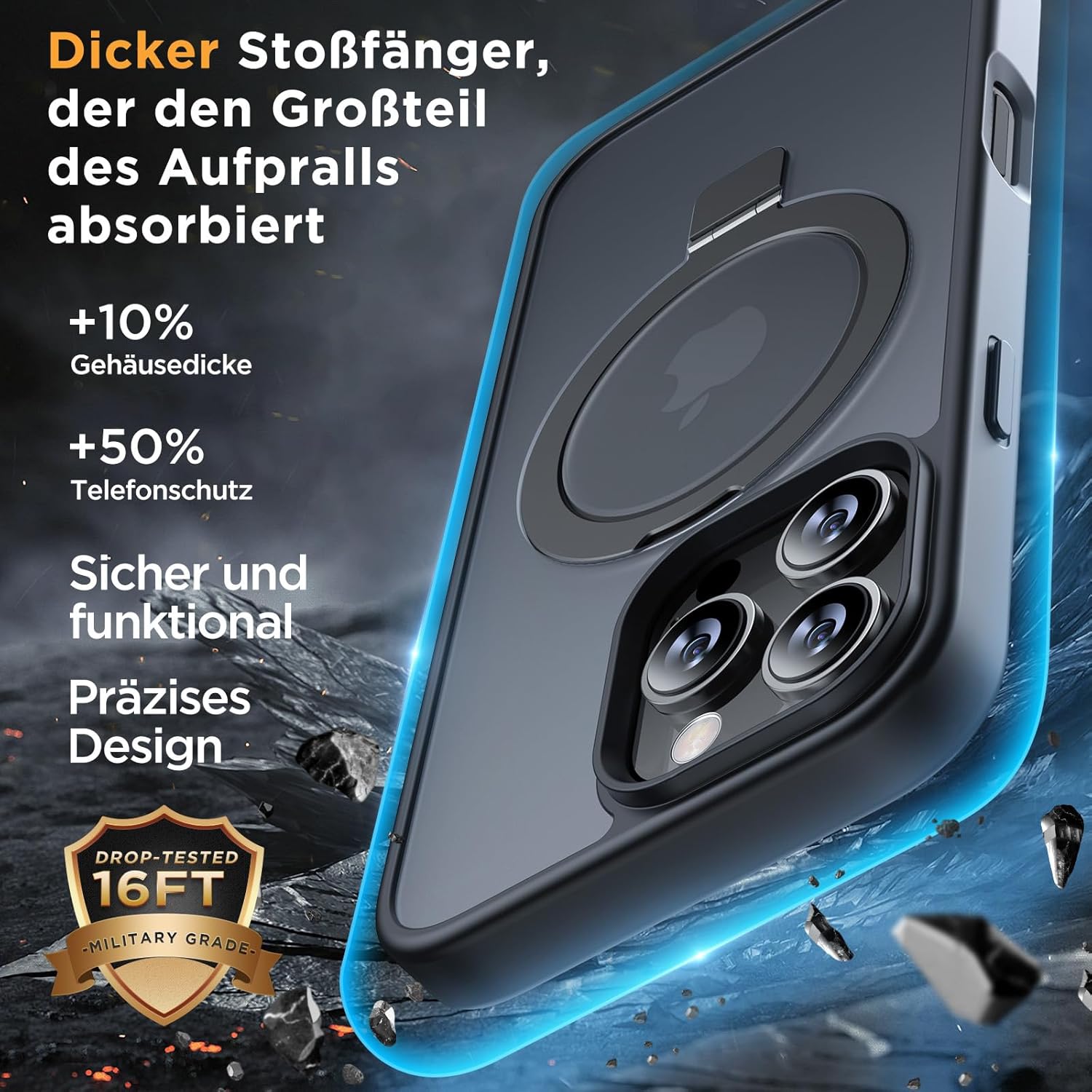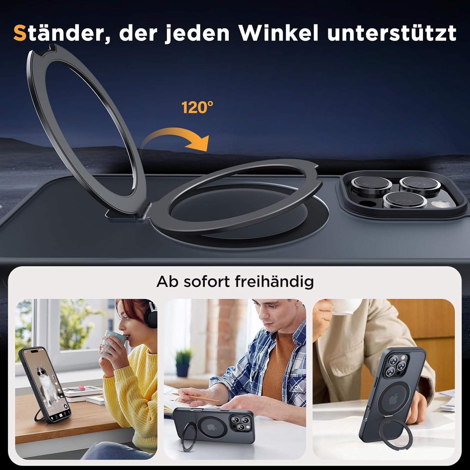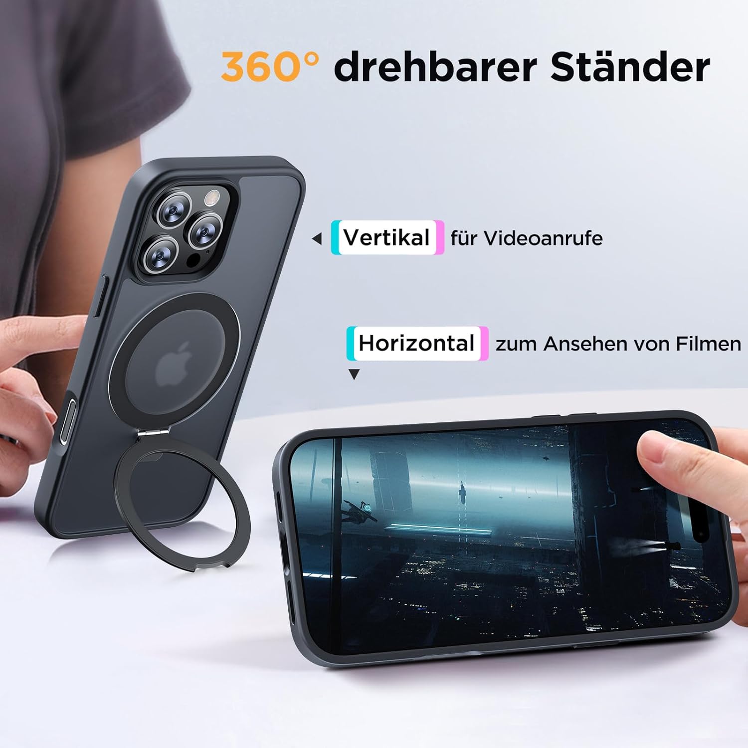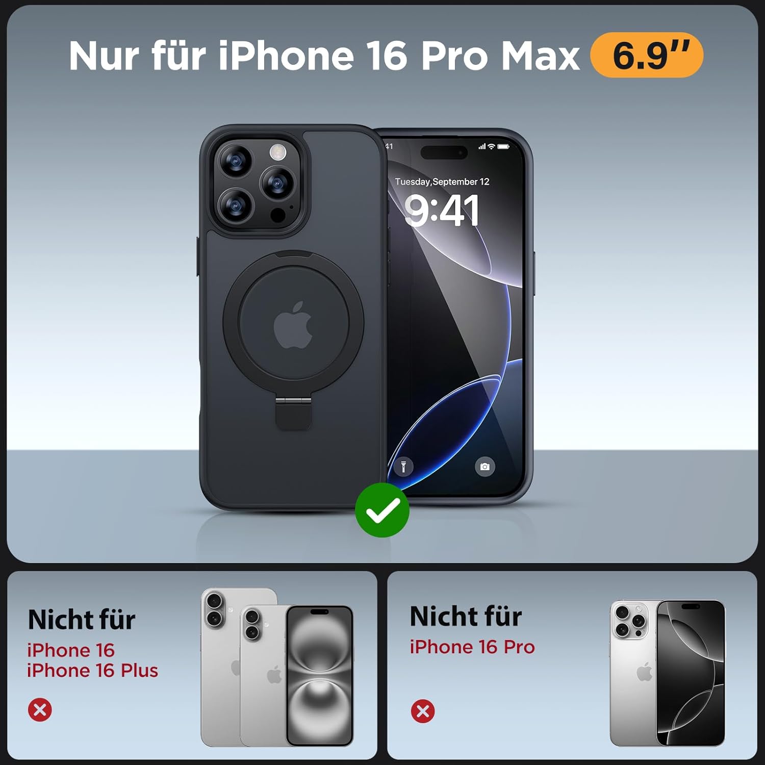 Miracase Magnetic калъф за iPhone 16 Pro Max със стойка 6.9 инча [съвместим с MagSafe] Удароустойчив калъф за мобилен телефон за iPhone 16 Pro Max с гъвкава и надеждна вградена стойка, черен