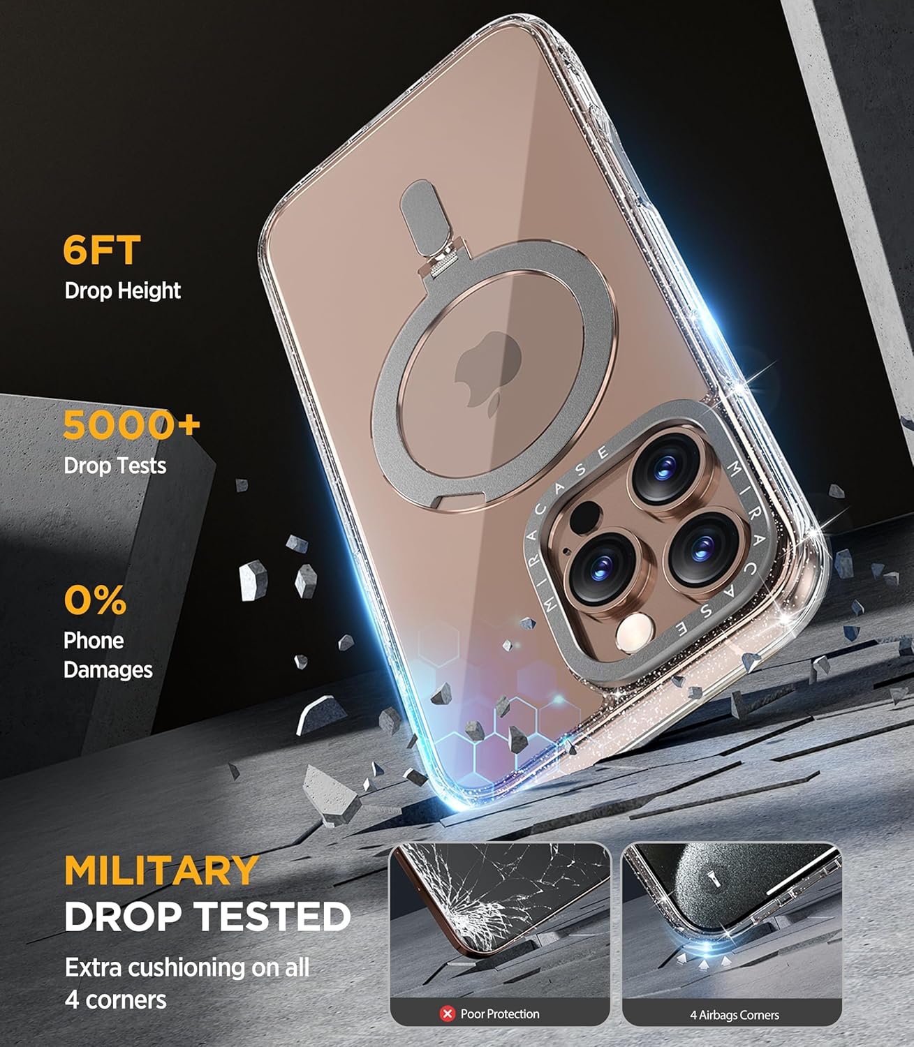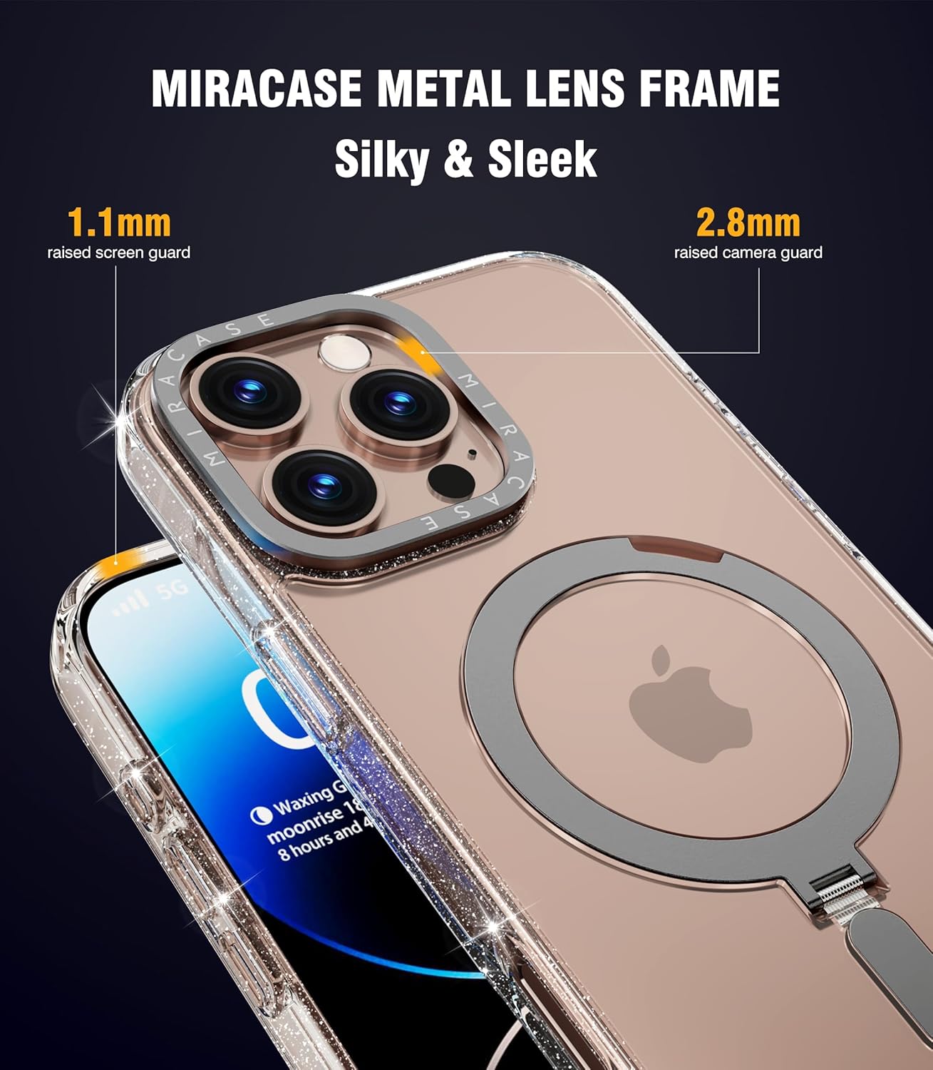 Miracase Magnetic калъф за iPhone 16 Pro Max със стойка 6.9 [Съвместим с MagSafe] Удароустойчив калъф за мобилен телефон за iPhone 16 Pro Max с гъвкава и надеждна вградена стойка, прозрачен блясък