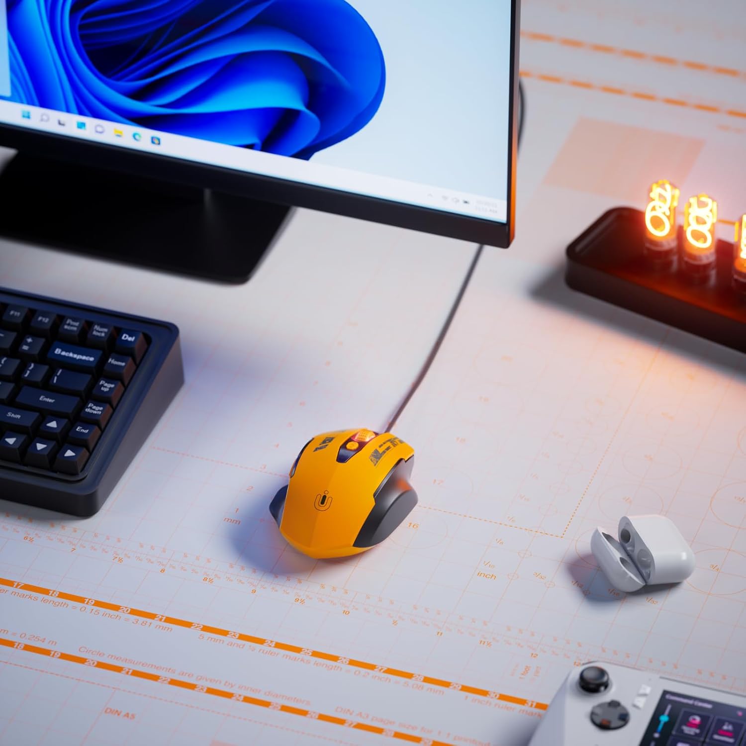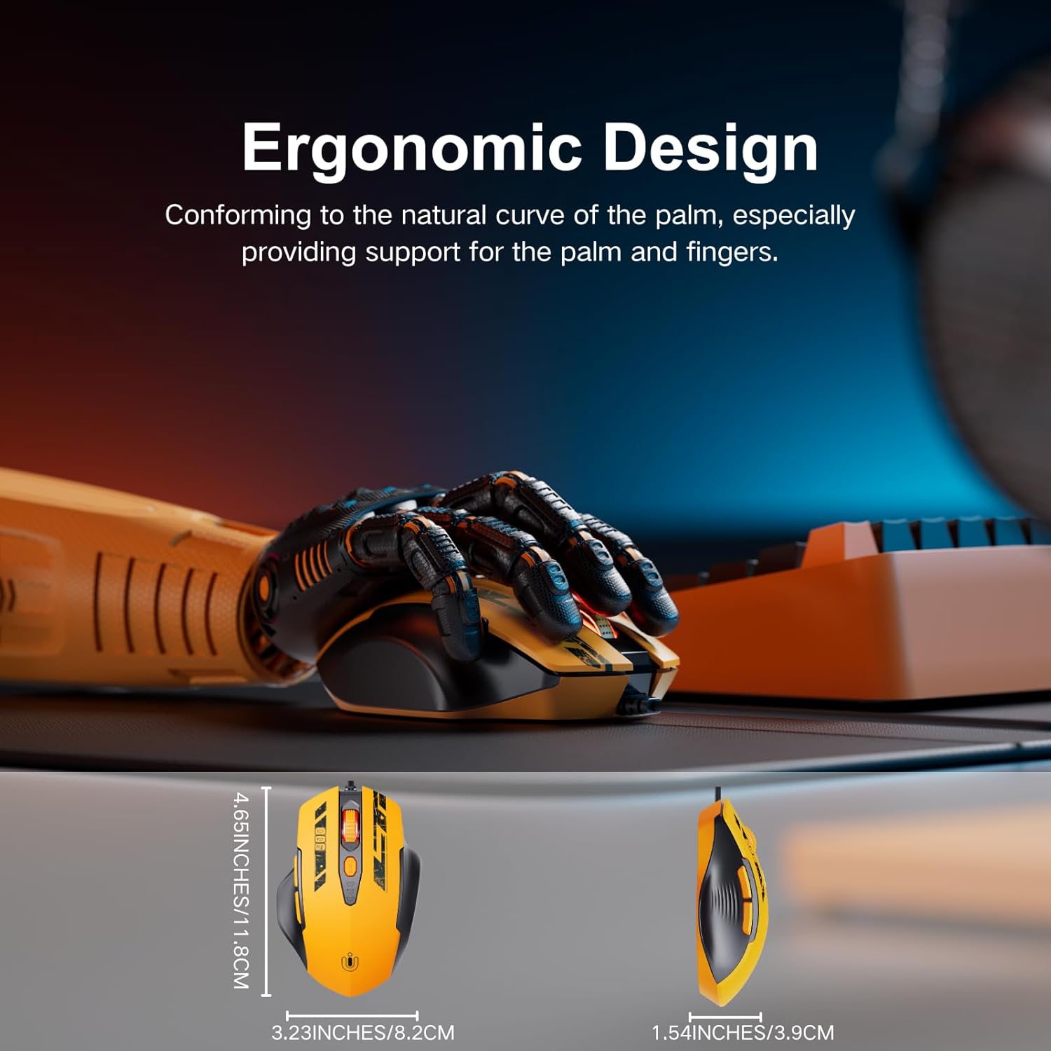 Мишка Uineer с кабел, ергономичен дизайн, регулируема резолюция до 7200 DPI с 6 бутона, компютърна мишка, за компютър, лаптоп, Plug & Play, матово жълта