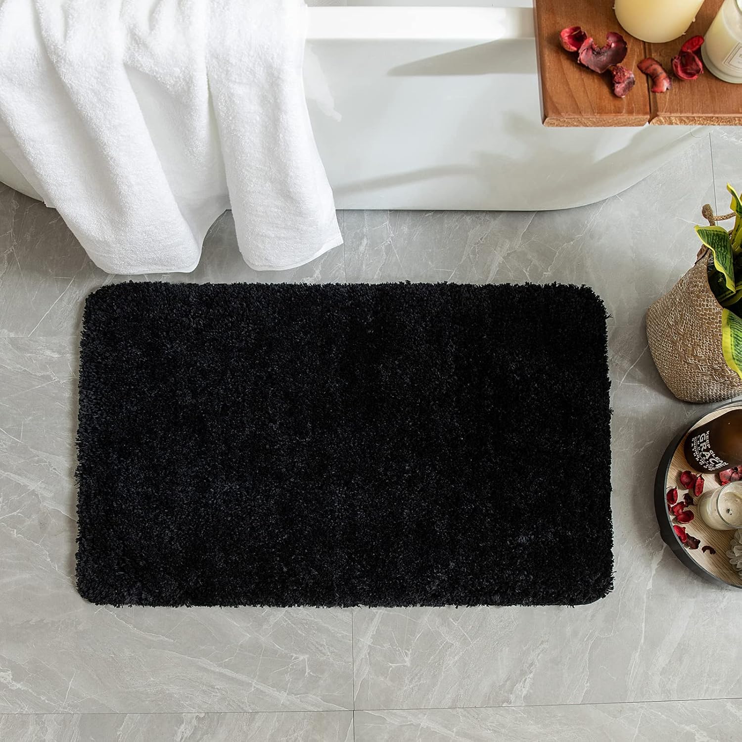 MIULEE Килимче за баня Меко килимче за баня Неплъзгащо се килимче за баня Килимче за баня Килимче за легло Пухкав килим Килимче за баня Килимче за душ за баня и хол Спалня 40 x 60 см Черно
