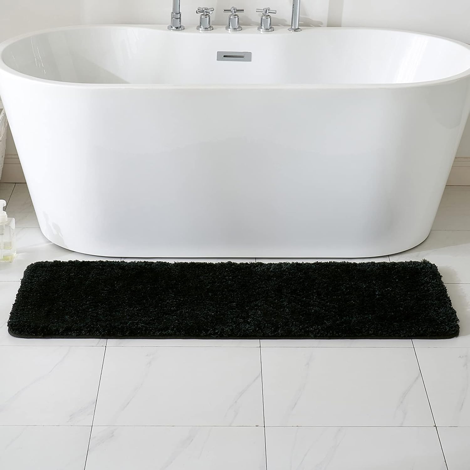 MIULEE Килимче за баня Меко килимче за баня Неплъзгащо се килимче за баня Килимче за баня Килимче за легло Пухкав килим Килимче за баня Килимче за душ за баня и хол Спалня 45 x 120 см Черно