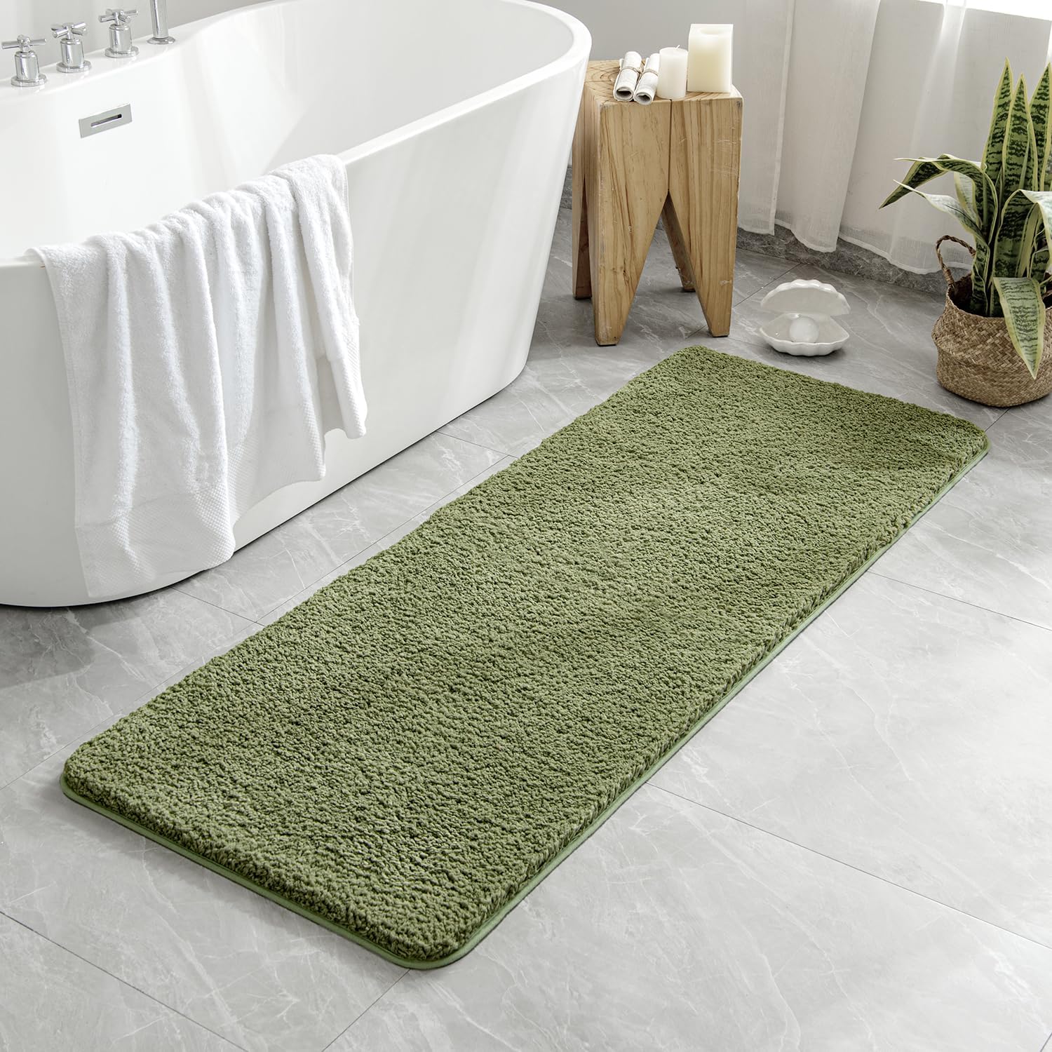 MIULEE Килимче за баня Меко килимче за баня Неплъзгащо се килимче за баня Килимче за баня Килимче за легло Пухкав килим Килимче за баня Килимче за душ за баня и хол Спалня 45 x 120 см Маслинено зелено