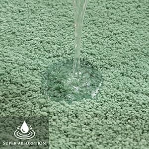 • СУПЕР АБСОРБИРАЩИ Нашите постелки за баня са изключително водопоглъщащи благодарение на микрофибърните си влакна с дължина до 4 см. Тази пухкава микрофибърна материя абсорбира водата по-бързо и по-добре от конвенционалните постелки за баня и веднага отделя мокрото от сухото.