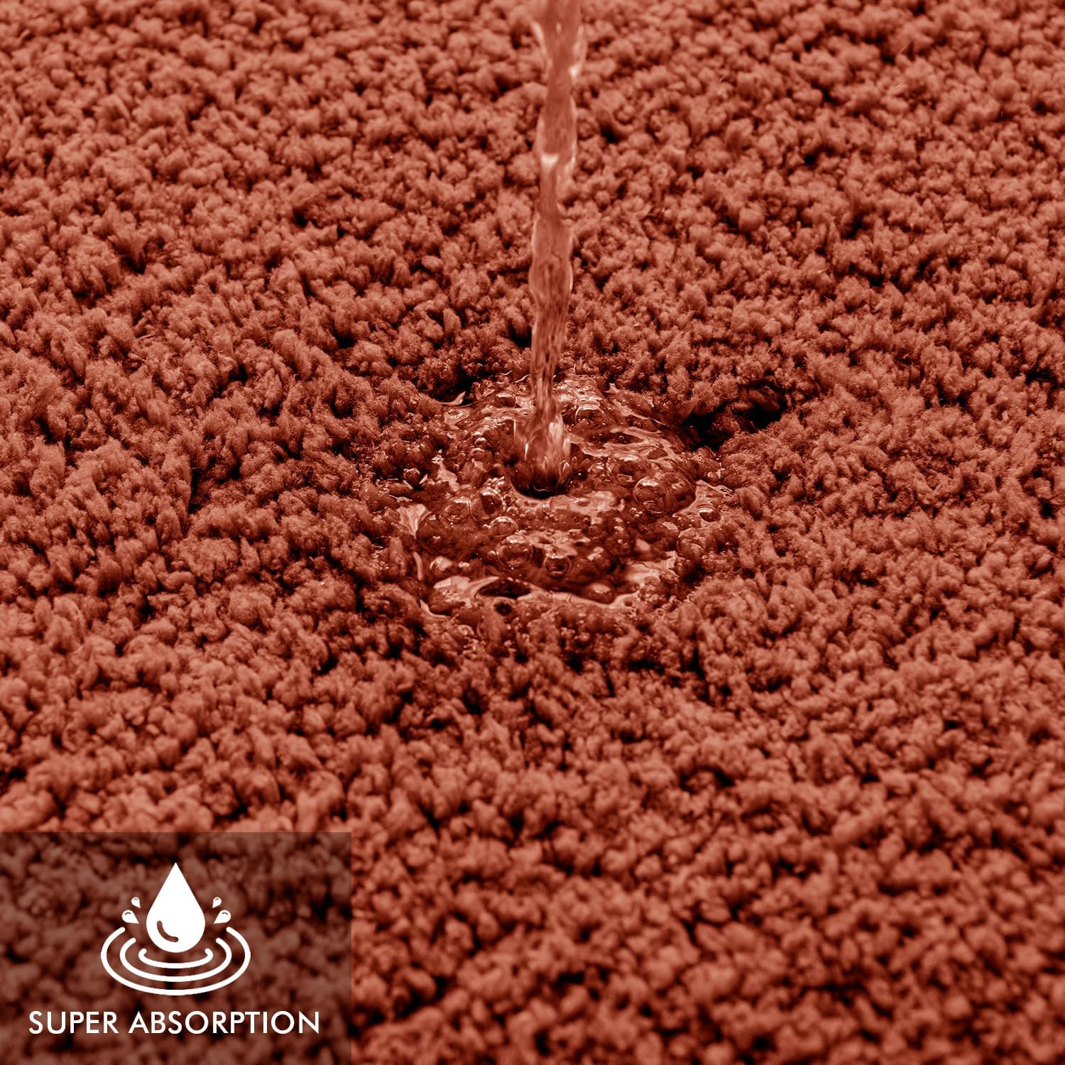• СУПЕР АБСОРБИРАЩИ Нашите постелки за баня са изключително водопоглъщащи благодарение на микрофибърните си влакна с дължина до 4 см. Тази пухкава микрофибърна материя абсорбира водата по-бързо и по-добре от конвенционалните постелки за баня и веднага отделя мокрото от сухото.