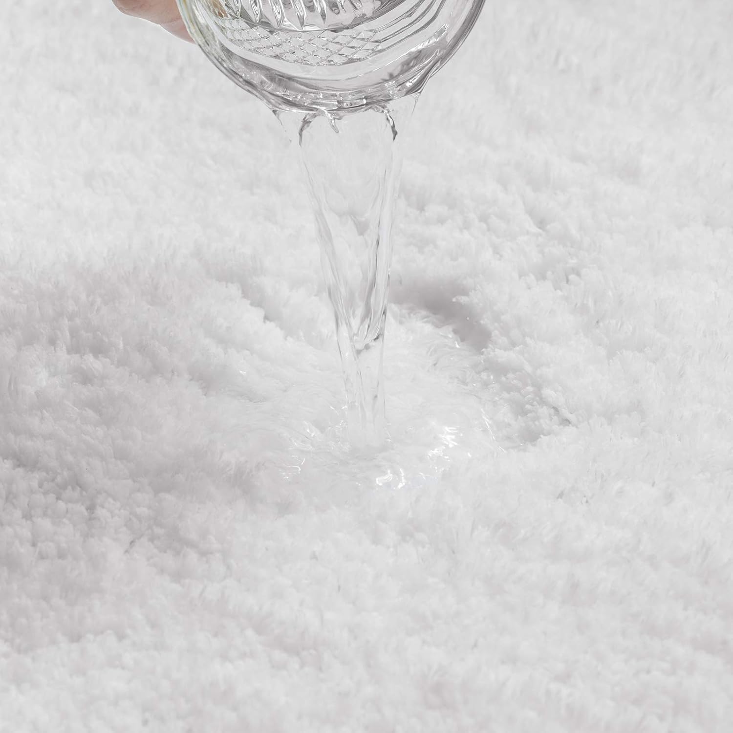 • СУПЕР АБСОРБИРАЩИ Нашите постелки за баня са изключително водопоглъщащи благодарение на микрофибърните си влакна с дължина до 4 см. Тази пухкава микрофибърна материя абсорбира водата по-бързо и по-добре от конвенционалните постелки за баня и веднага отделя мокрото от сухото.