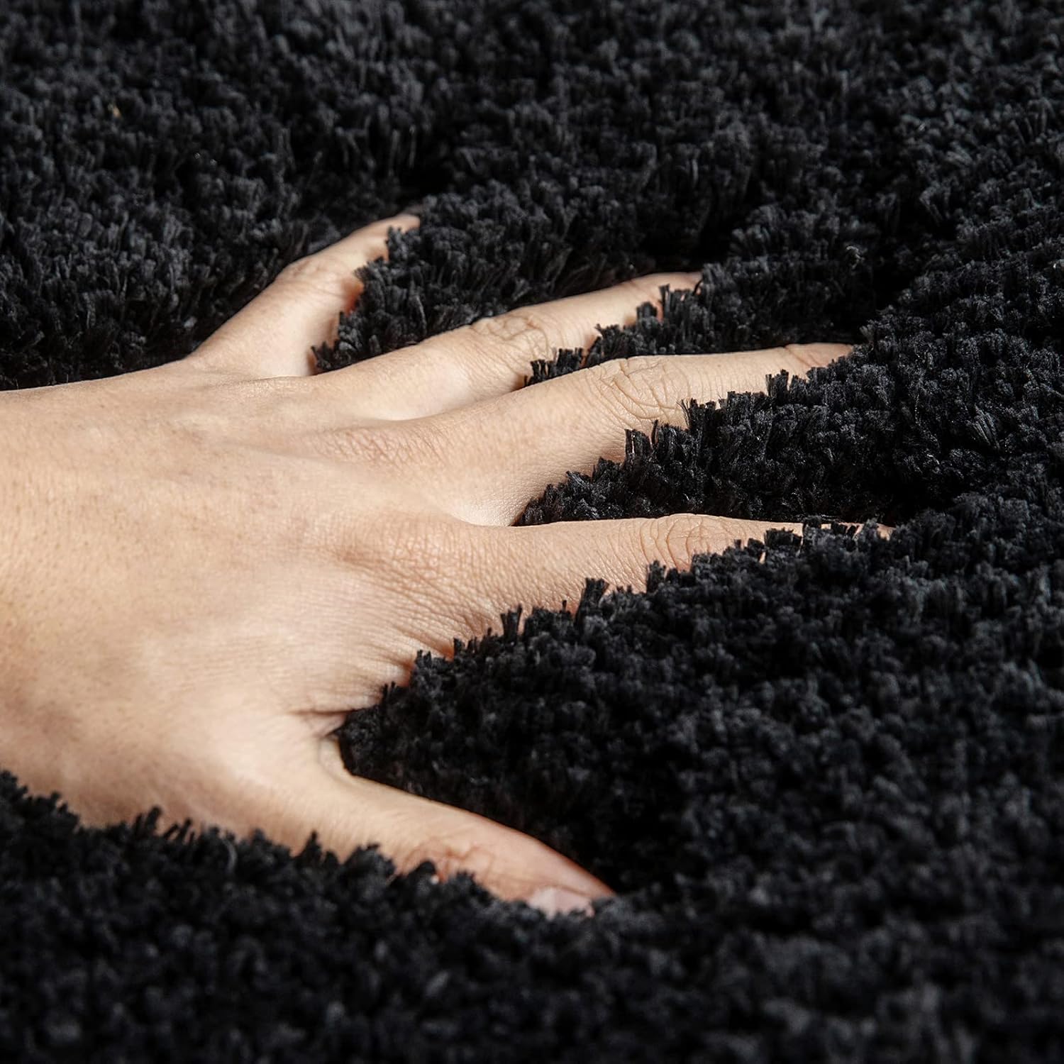 MIULEE Постелка за баня, Мека постелка за баня, U-образна декоративна постелка, Неплъзгаща се изтривалка за врата Пухкав килим, Переща се постелка за баня, Килим за баня за тоалетна, Тоалетна, Баня, 50 x 50 см, Черен